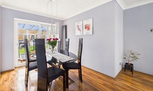 Set back from the road, the property is enclosed by a low level brick wall with wrought iron railings, opening onto a low maintenance frontage. This area is predominantly laid to a brick weave driveway, which continues down the side of the property and provides ample off road parking leading to the garage. The main entrance is conveniently positioned to the front under a sheltered open porch.