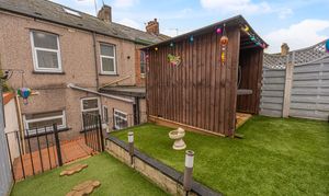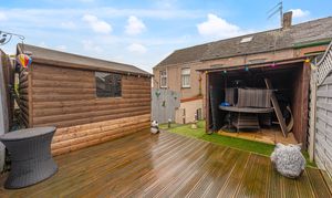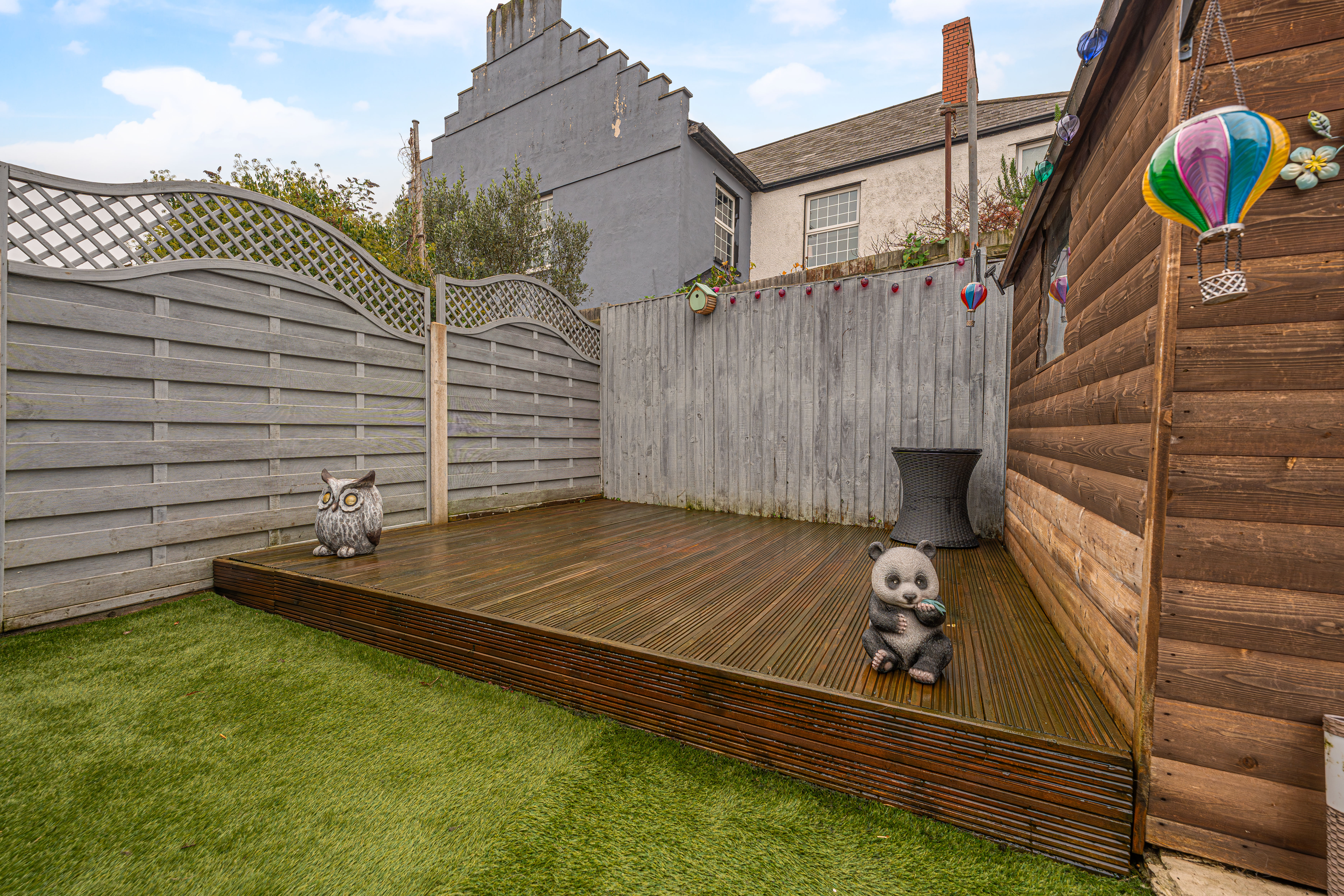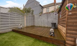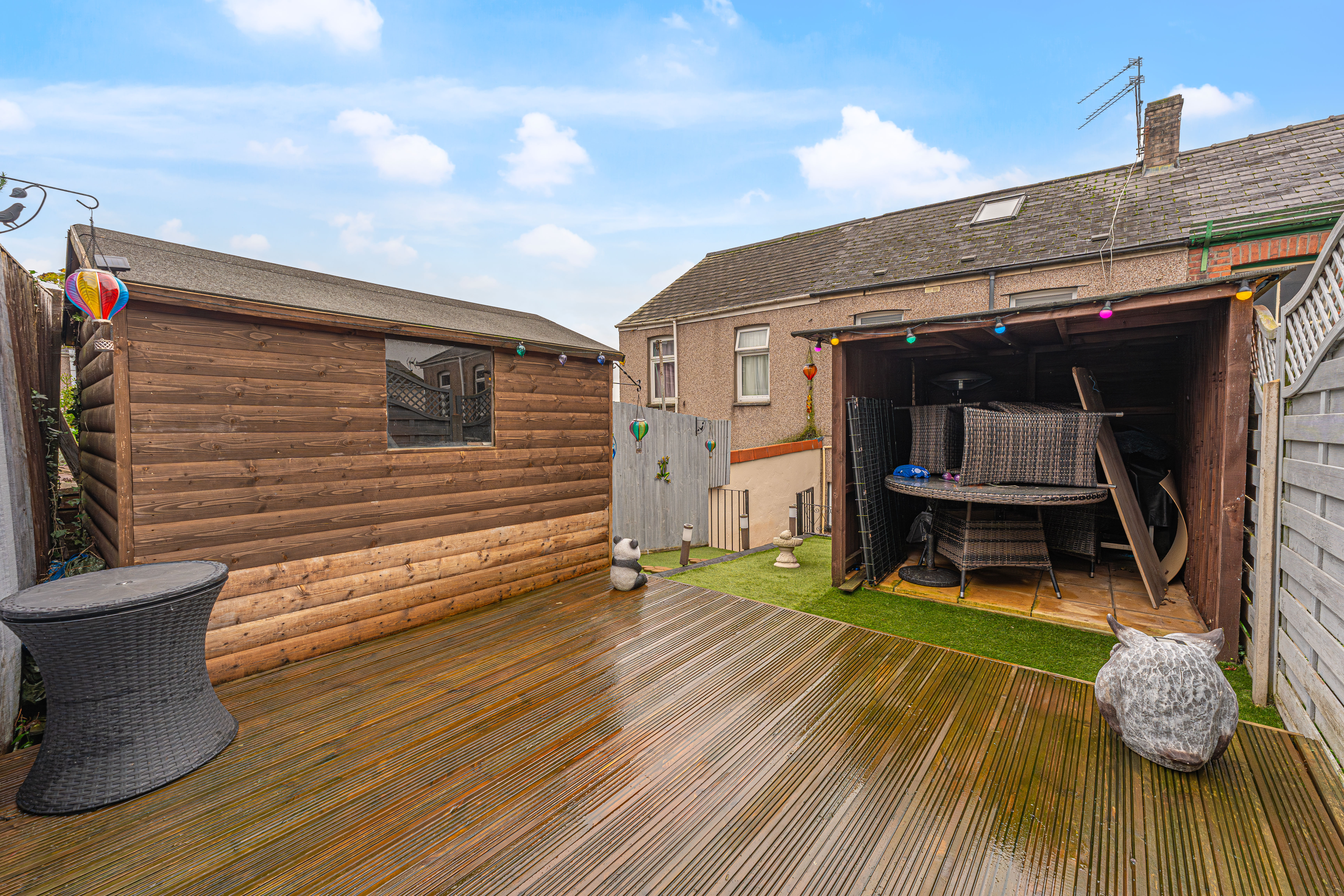 Stepping outside the have the rear garden, which consists of a terraced patio, with a turf lawn and deck beyond, offering plenty of space for relaxing in the fresh air, and welcoming friends and family. The garden also features a useful storage shed, and a covered patio space that is ideal for a sheltered lounge space, or for dining al-fresco style. On road parking is available to the front of the house.