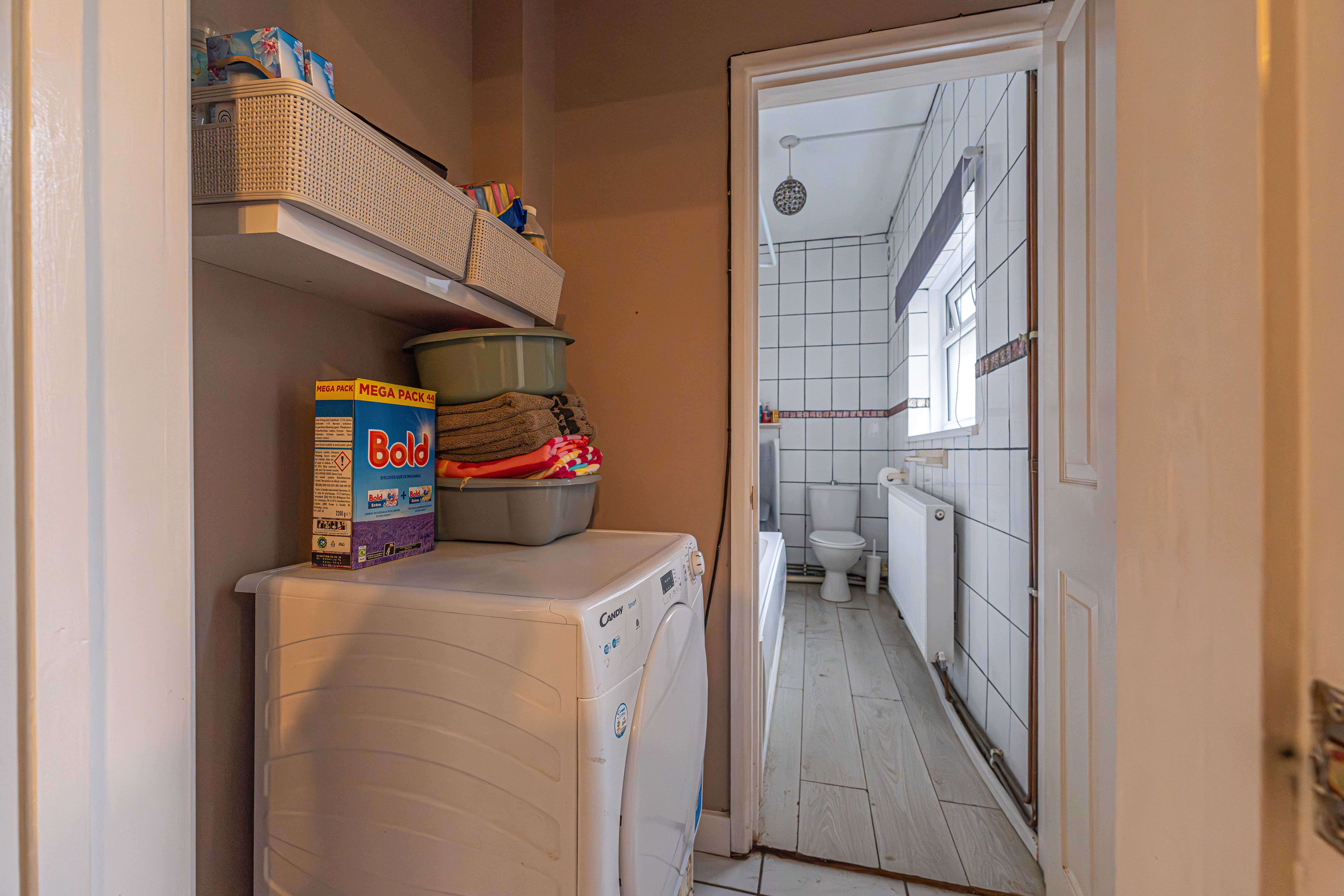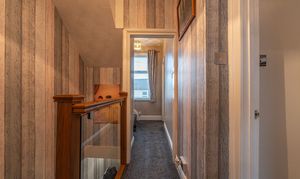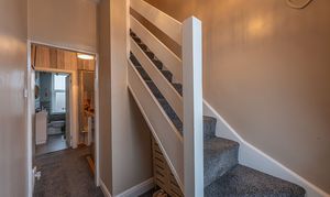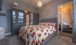 To the first floor we have the two bedrooms, which are both spacious double rooms, with one of the bedrooms having access to a fitted wardrobe for easy storage. The former third bedroom has been converted into another stunning bathroom, while a staircase from the landing takes us up to the third bedroom, offering eves storage.
