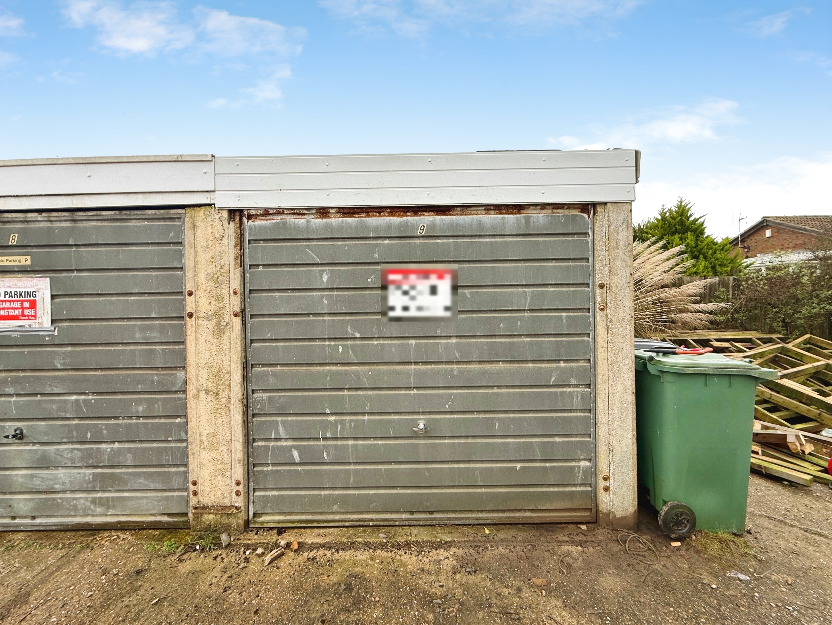 A garage en-bloc with up & over door, found immediately outside the property.