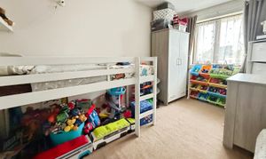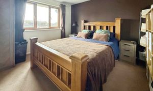 An L-shaped room. Carpeted, double glazed window to front, area suitable for wardrobes and dressing table, radiator.