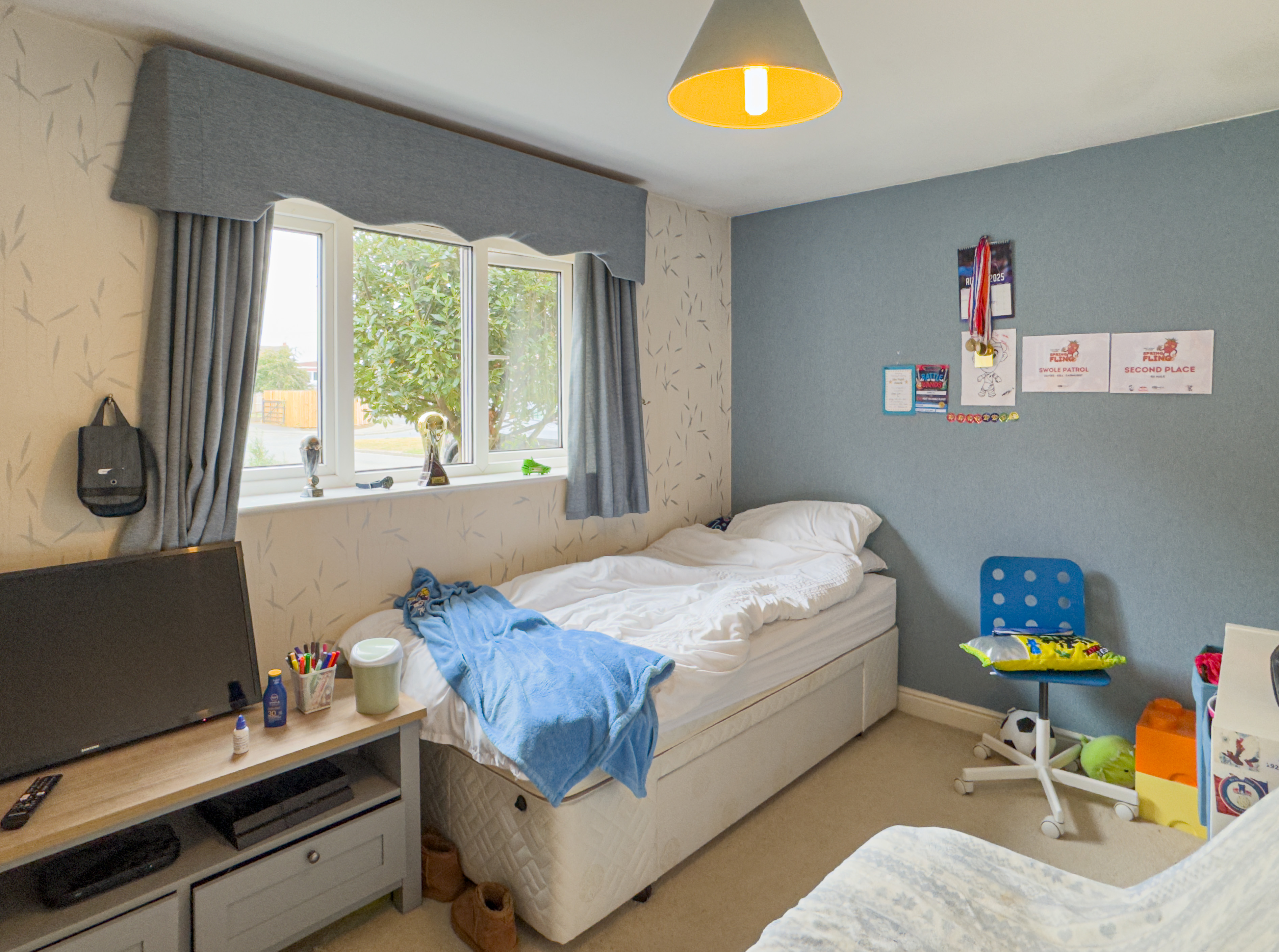 To the front of the property and currently used as work from home space the fifth bedroom would comfortably house a double bed.
