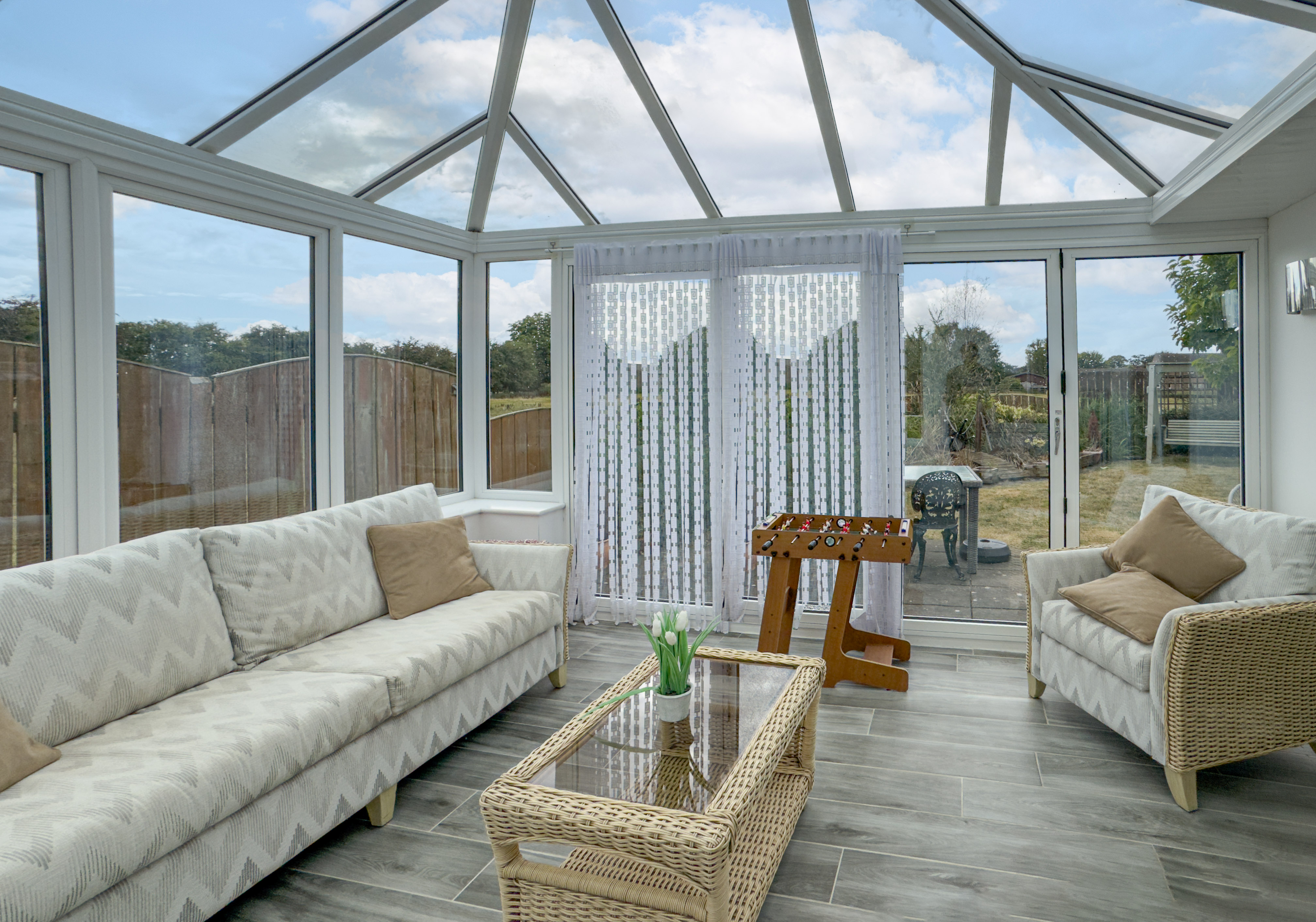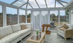 The conservatory has large doors which open onto the garden, the wood effect flooring and electric heater make the room useable all year round.