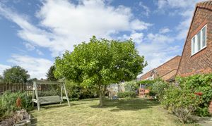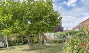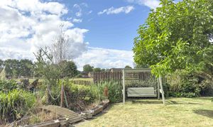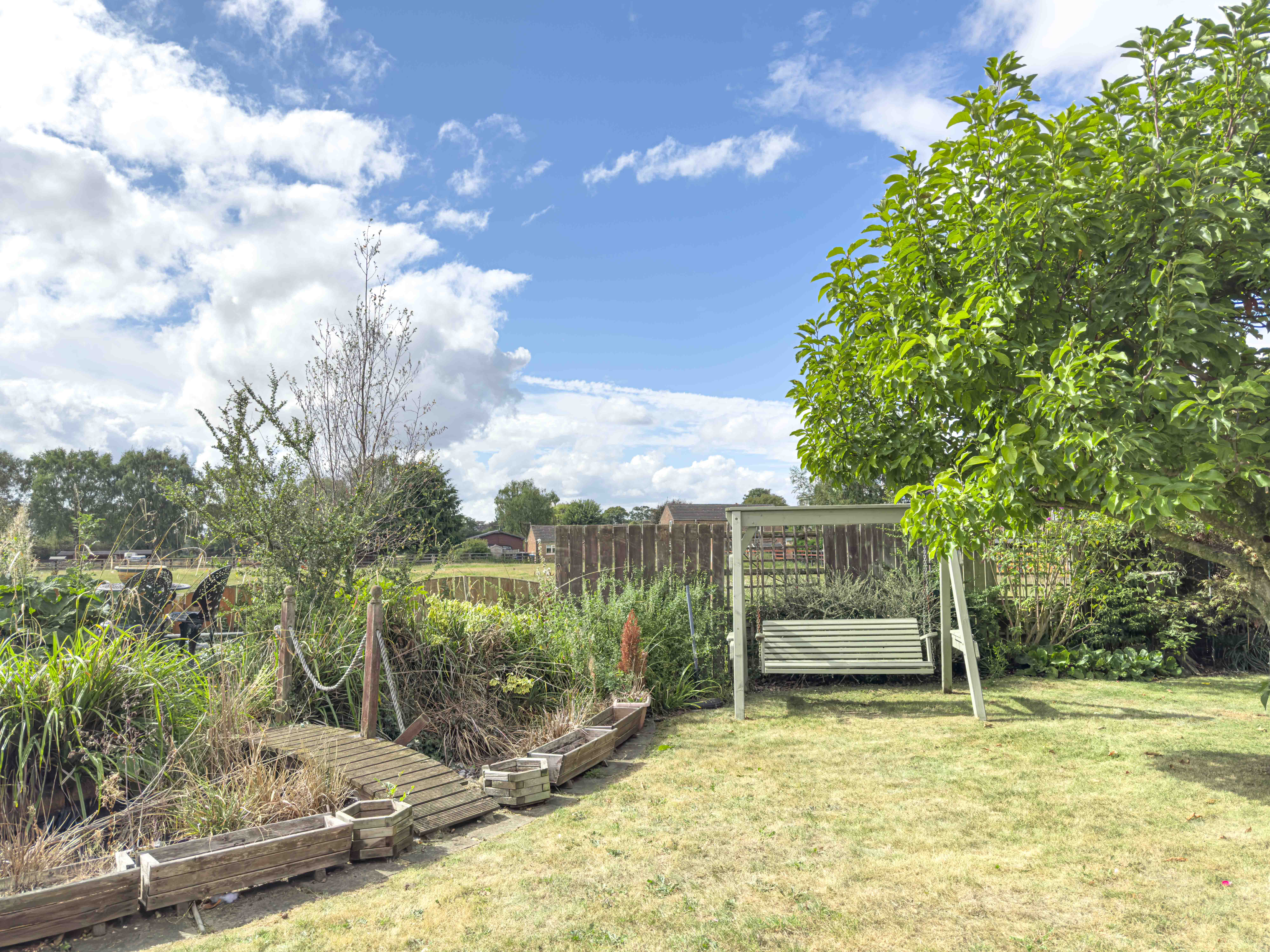Sitting on a large plot, the rear garden opens out to a pleasant view and benefits from a west-facing lawn that enjoys afternoon and evening sun. Features like established fruit trees, a pond, and multiple seating areas make this garden ideal for outdoor dining, socialising, or simply enjoying the peaceful surroundings.