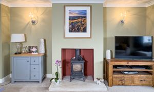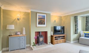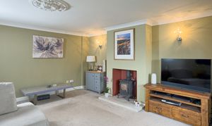 To the rear of the property with a large walk in bay window the sitting room has a log burning stove set into a marble hearth.