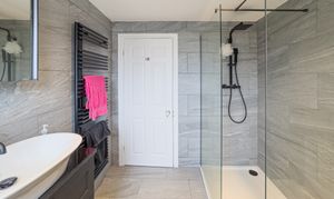 The ensuite bathroom has a bath with a handheld shower above, the shower cubicle is fitted with a multijet shower. Finished with a towel radiator.