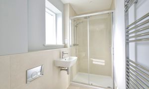 Porcelanosa Bottega Caliza wall and floor tiles to ground floor shower room, plus first floor family bathroom and en suites.