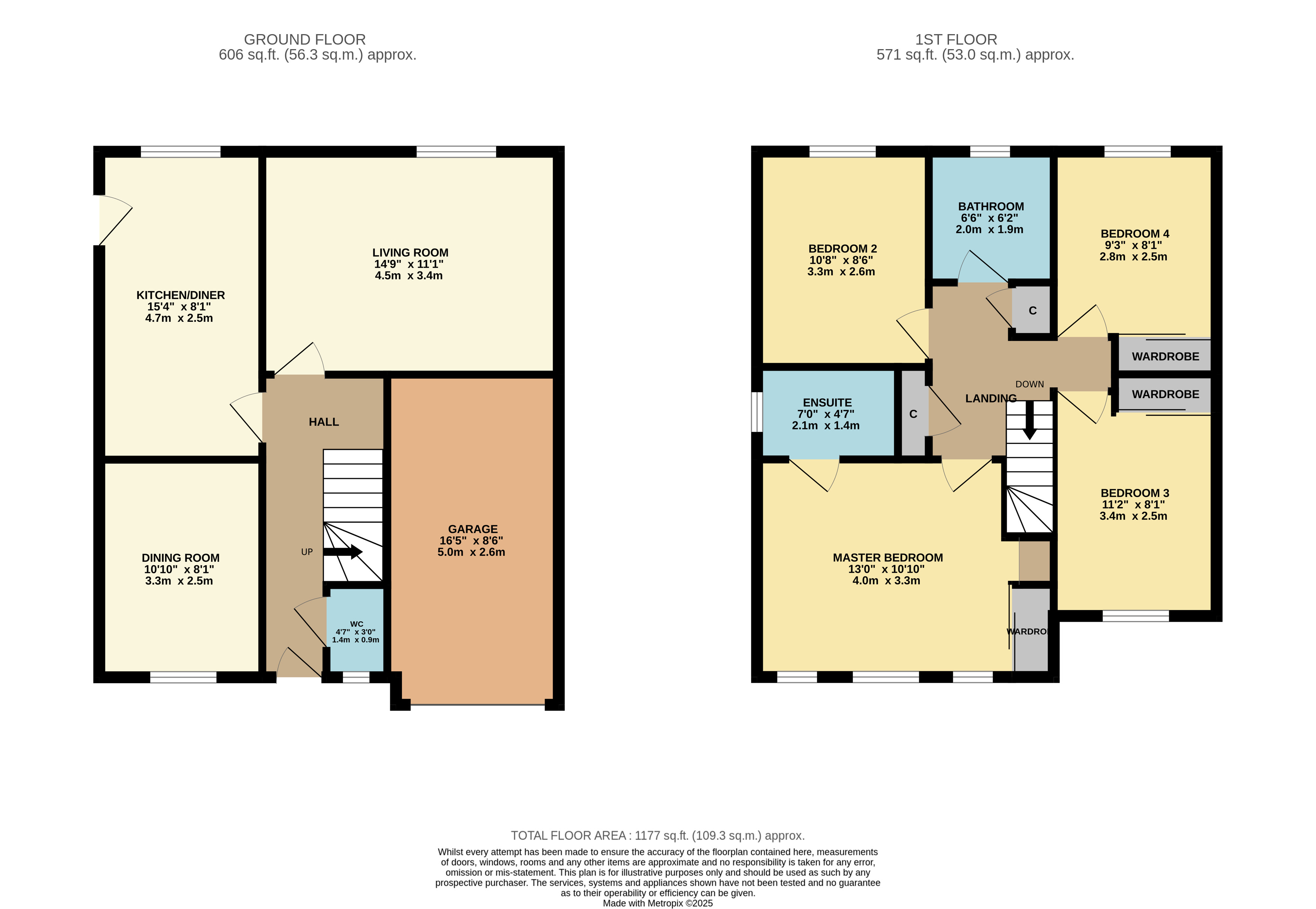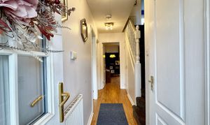 The heart of the home lies in the lovely kitchen diner, complete with integrated appliances, where culinary creations and family meals come to life. Ascend to the upper landing, where you will find two additional cupboards for storage and access to the loft space. The upper level houses four well-appointed bedrooms, with three benefiting from fitted wardrobes, offering ample storage solutions.