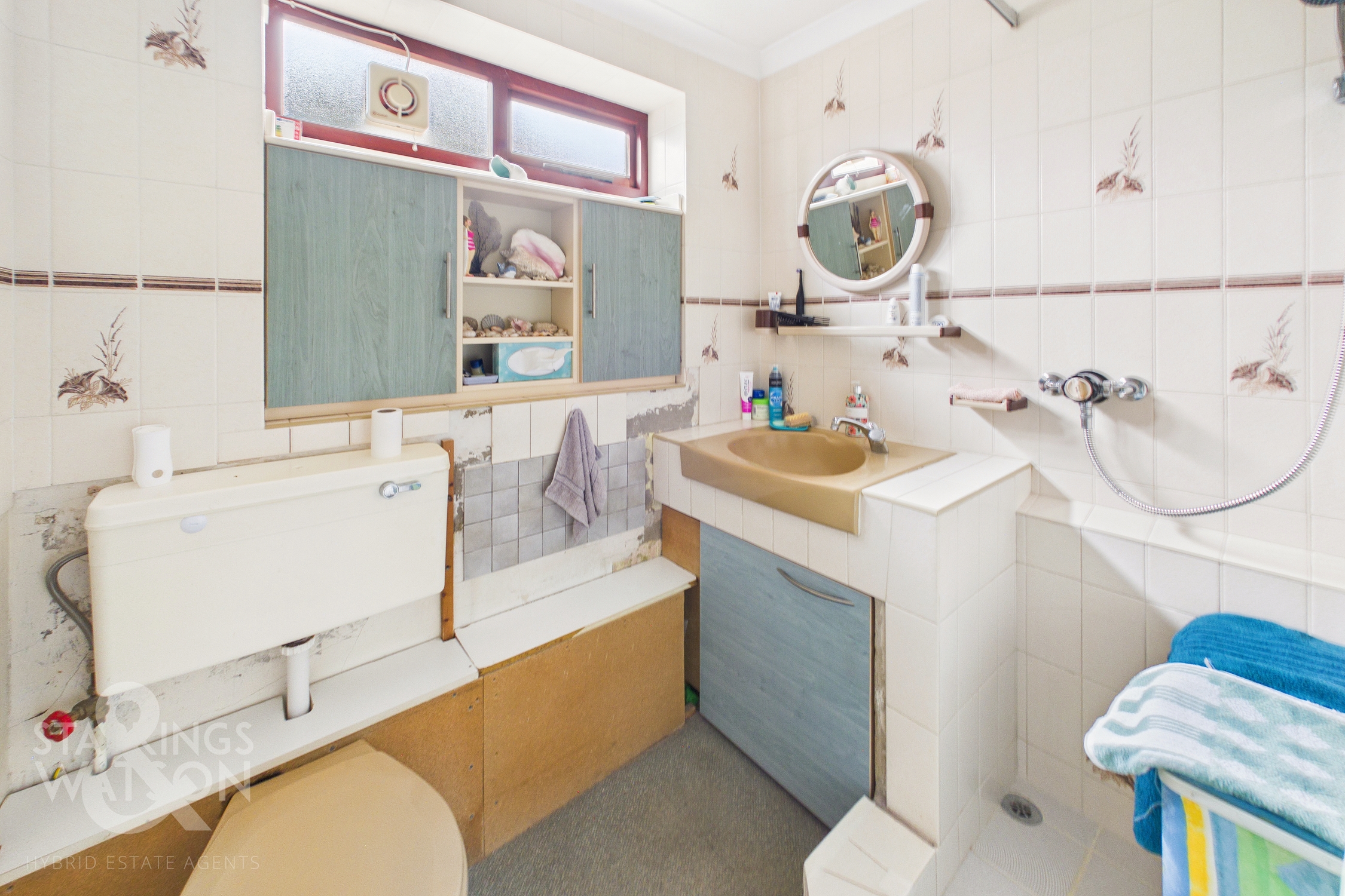 Once inside, the hall entrance is finished with fitted carpet and stairs rising to the first floor landing, with two built-in storage cupboards and doors leading off to the main living accommodation. Sitting opposite, a walk-in storage cupboard or utility area can be found with built-in storage units and space for general white goods including a fridge and freezer. The main living space sits to the rear of the property with a bay window opening up to the rear, enjoying panoramic garden views. Fitted carpet runs underfoot with a feature fireplace creating a focal point to one side. Sitting opposite the ground floor bedroom or dining room offers a versatile range of uses with fitted carpet and front facing window. Sitting opposite, the kitchen/breakfast room has been extended and includes an extensive array of built-in storage with integrated cooking appliances including an inset gas hob and built-in eye level electric double oven, space is provided for a washing machine with the fridge integrated. Fitted carpet flows through the space with a front facing window, door leading out to the side access, wall mounted gas fired central heating boiler and space for a breakfast table. The ground floor shower room requires some remedial works and offers a three piece suite with a walk-in shower cubicle, storage under the hand wash basin and side facing window.