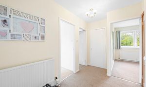 Doors to lounge/dining room, breakfasting kitchen, bedrooms, wet room and two storage cupboards, one housing electric switchgear. Hatch to loft. Radiator, 3-way light fitting.