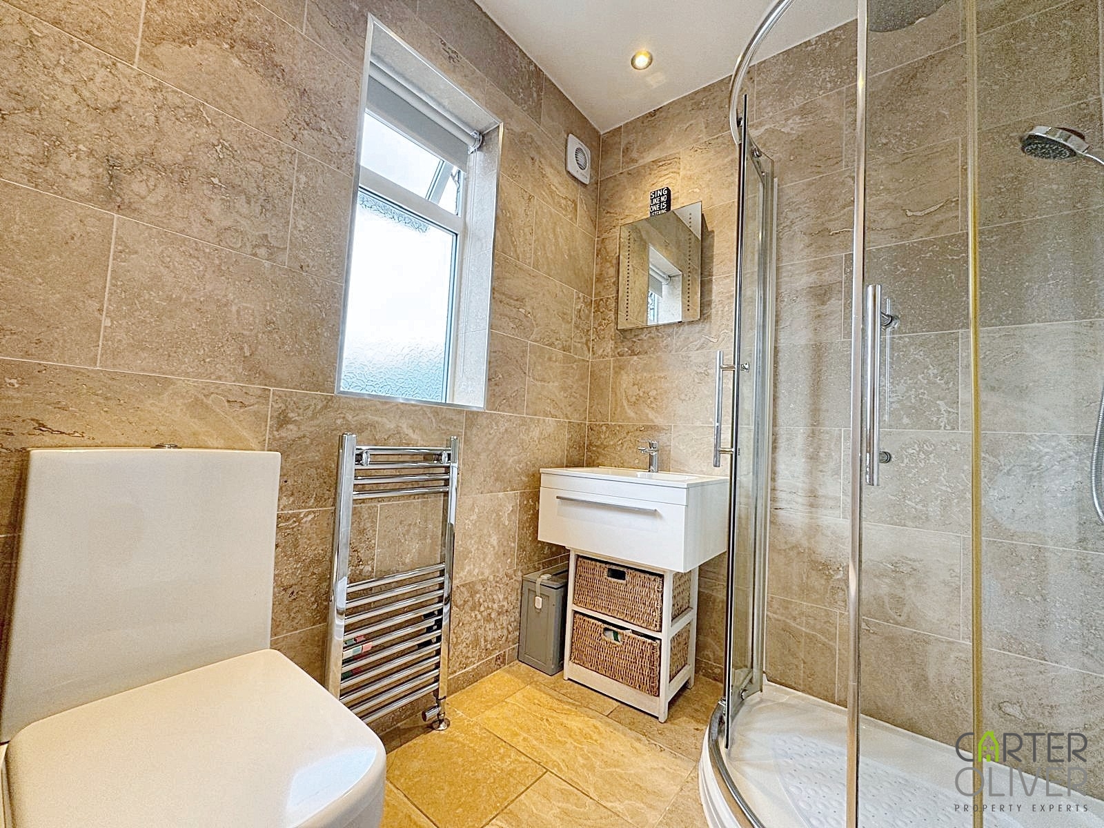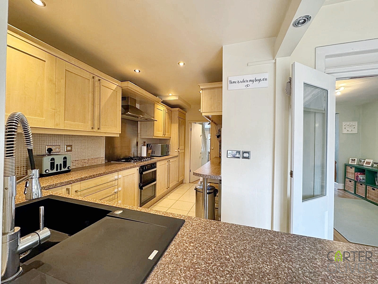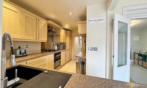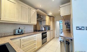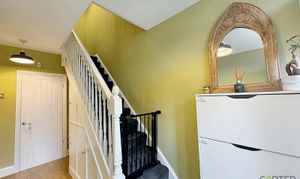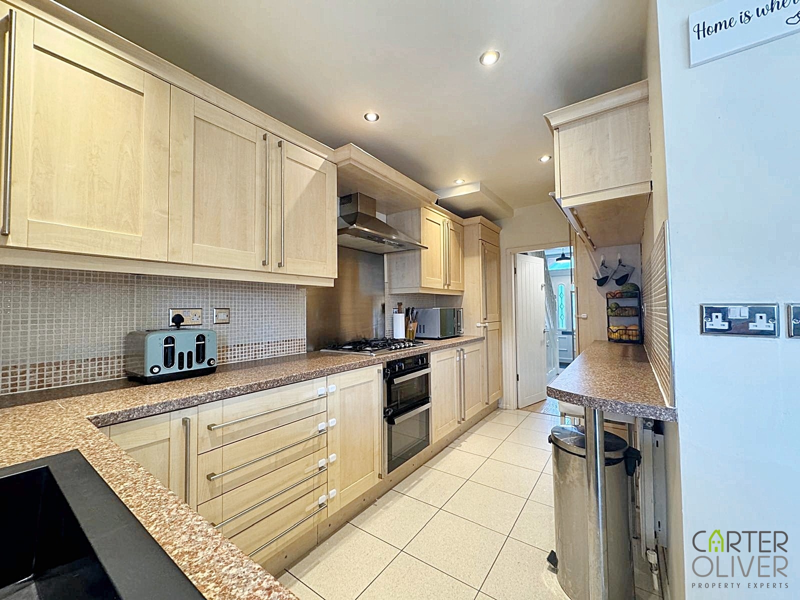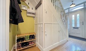 This beautifully presented three-bedroom, mid-terraced house offers the perfect blend of contemporary style and practical family living. The property features two bright and spacious reception rooms with open plan layouts, enhanced by elegant wooden flooring, modern lighting, and large bay windows that fill the living areas with natural light. The modern kitchen is equipped with sleek wood-finished units, integrated appliances, a tiled backsplash, and a handy breakfast bar, seamlessly connecting to the dining area for a sociable atmosphere. Upstairs, each bedroom boasts its own character, with plush carpeting, bold accent walls, and built-in mirrored wardrobes that maximise space and brightness. The stylish family bathroom is finished to a high standard, featuring a walk-in shower, heated towel rail, and natural stone tiles. Practicality is further ensured with under-stair storage and a welcoming hallway with modern touches.