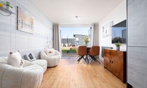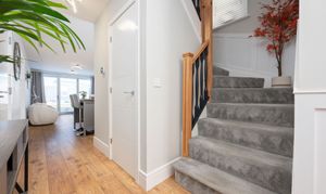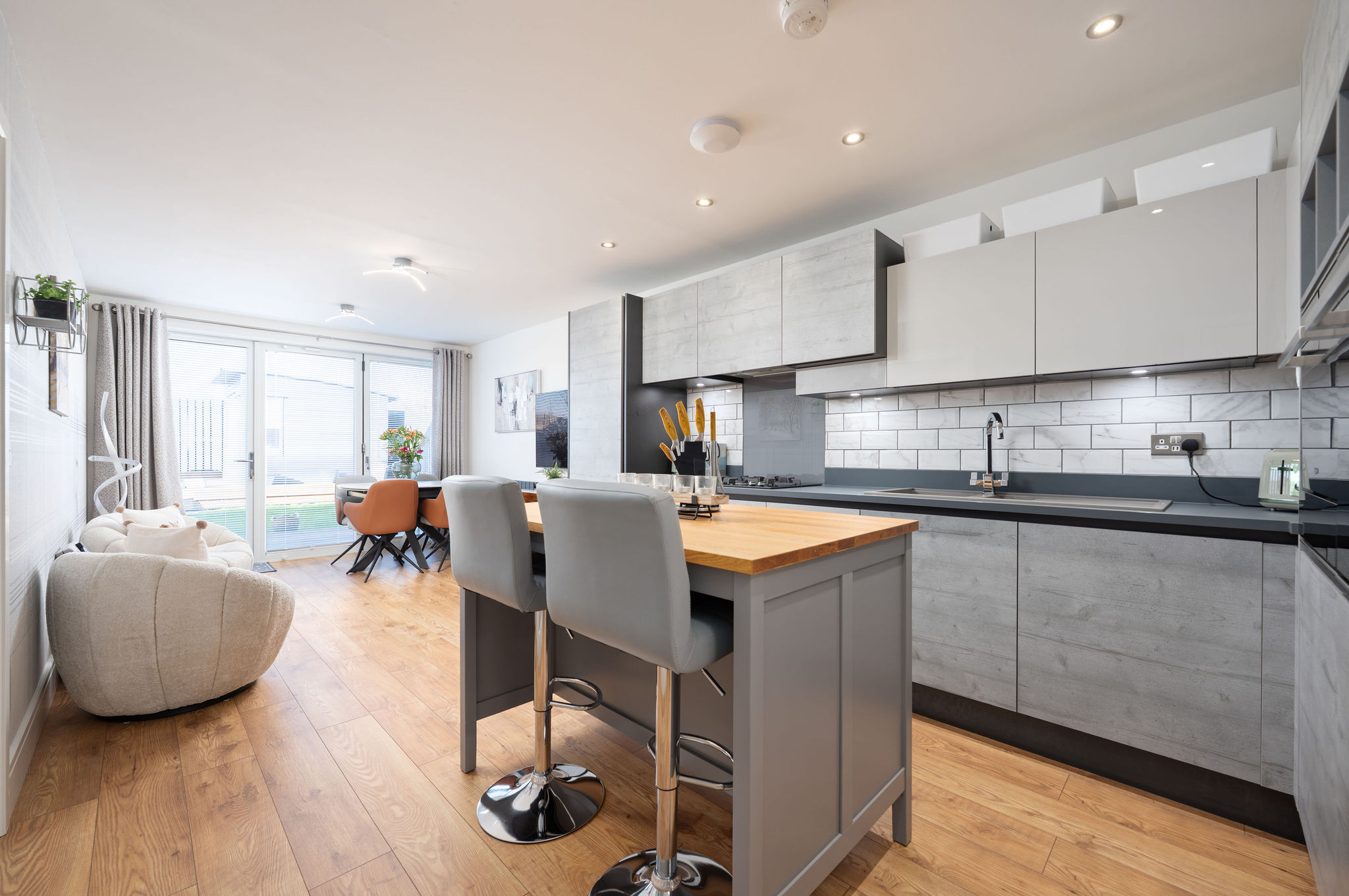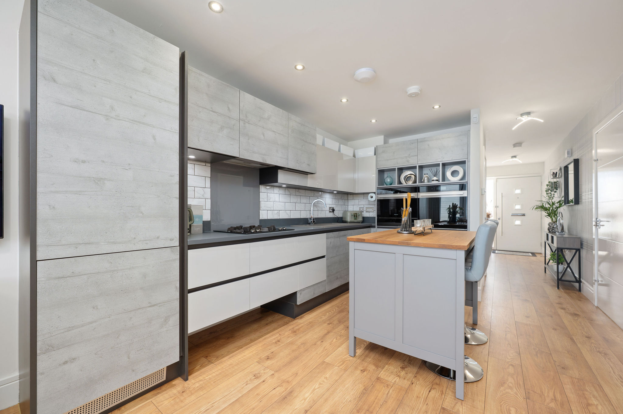 The ground floor welcomes you with a bright entrance hallway leading to the stunning open-plan kitchen/diner, featuring a central island and a range of integrated appliances including a gas hob, electric oven, microwave and fridge freezer. The kitchen also benefits from a utility cupboard with plumbing for a washing machine, Bi-fold doors open directly onto the rear garden, creating a seamless connection between indoor and outdoor living. There is also a spacious lounge and a convenient WC and a utility cupboard with plumbing for a washing machine completes the ground floor accommodation.
