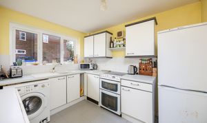 The front door leads into the hall which has stairs rising to the first floor. Off the hall to the front is the kitchen and to the rear is the 14’10 × 13’9 living room/dining room which has a WOODBURNER and double patio doors to the garden.