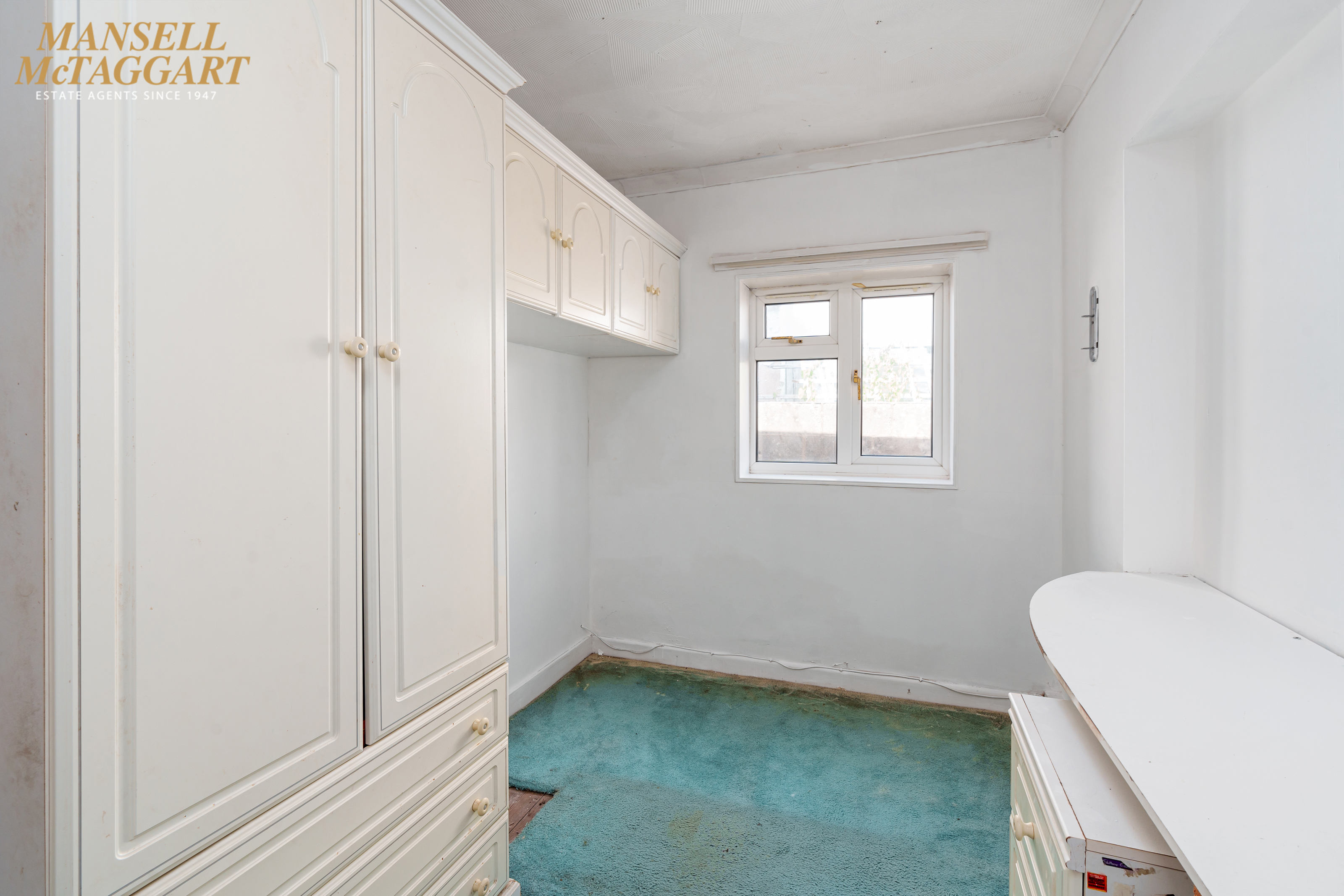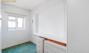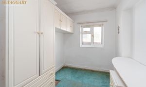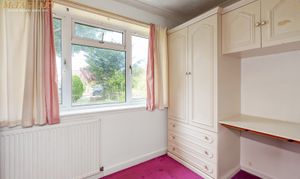 Bedroom two: Single bedroom with fitted wardrobes, fitted drawers and fitted eye level cupboards with space for a single bed and uPVC double glazed window to front.