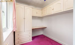Bedroom three: Another single, also with fitted wardrobes, fitted drawers and fitted eye level cupboards with space for a single bed and uPVC double glazed window to side.