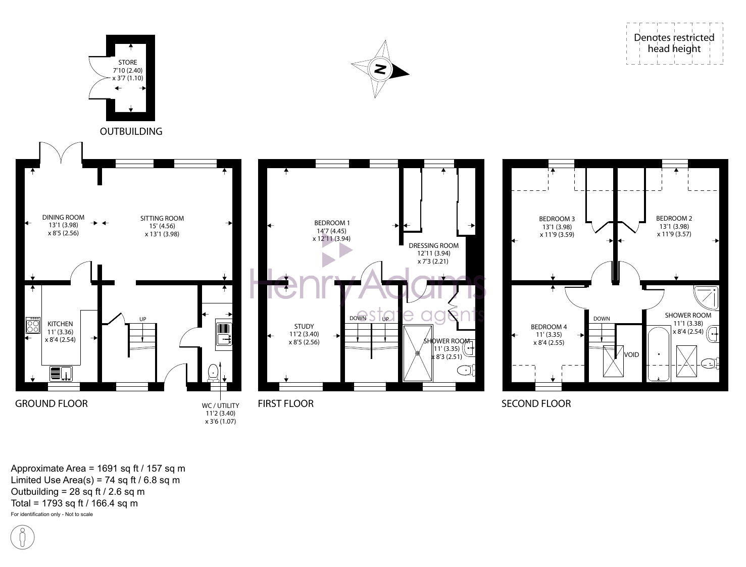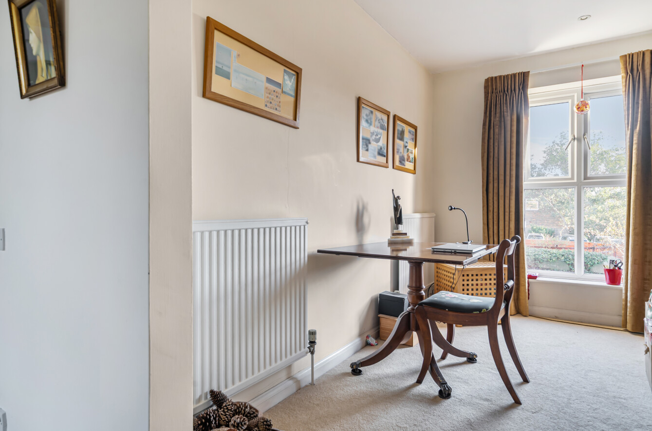The first floor is dedicated to the principal suite, comprising a light double bedroom, an archway opening into a study area, a dressing room with built-in wardrobes and a spacious, well-appointed en-suite shower room with walk-in shower.