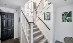 Outside, a courtyard garden wraps around the front and side of the property, leading to a small west-facing courtyard at the rear. The house benefits from off-road parking for two vehicles at the front, in addition to unallocated private roadside parking opposite the property.