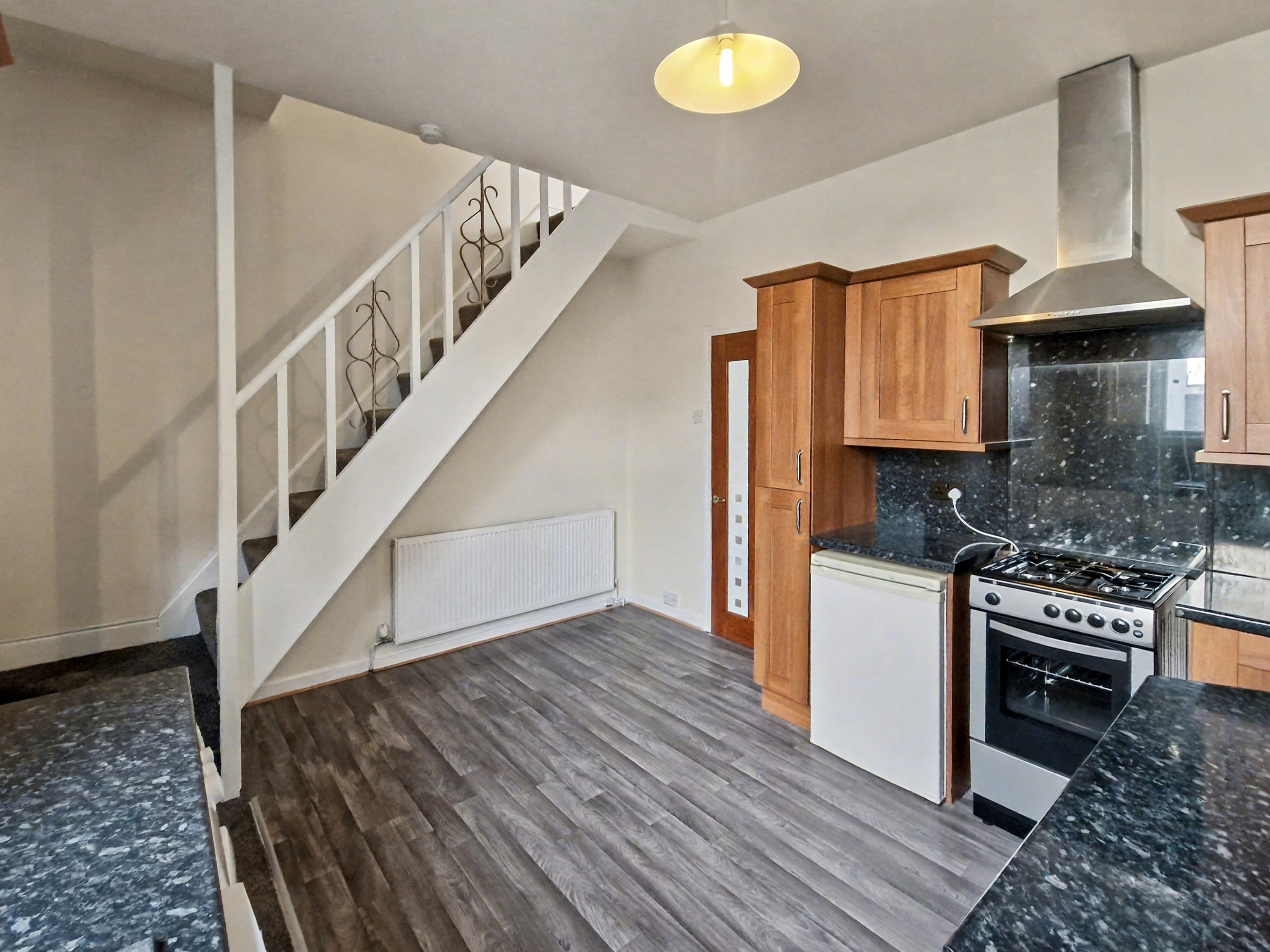 The accommodation briefly comprises a spacious lounge with neutral décor and plenty of natural light, leading through to a modern fitted kitchen offering ample storage and worktop space. Upstairs there are two well-proportioned bedrooms, ideal for professionals, couples, or a small family, along with a contemporary bathroom fitted with a three-piece suite and stylish finishes. To the rear is a private enclosed yard, perfect for outdoor seating or storage.