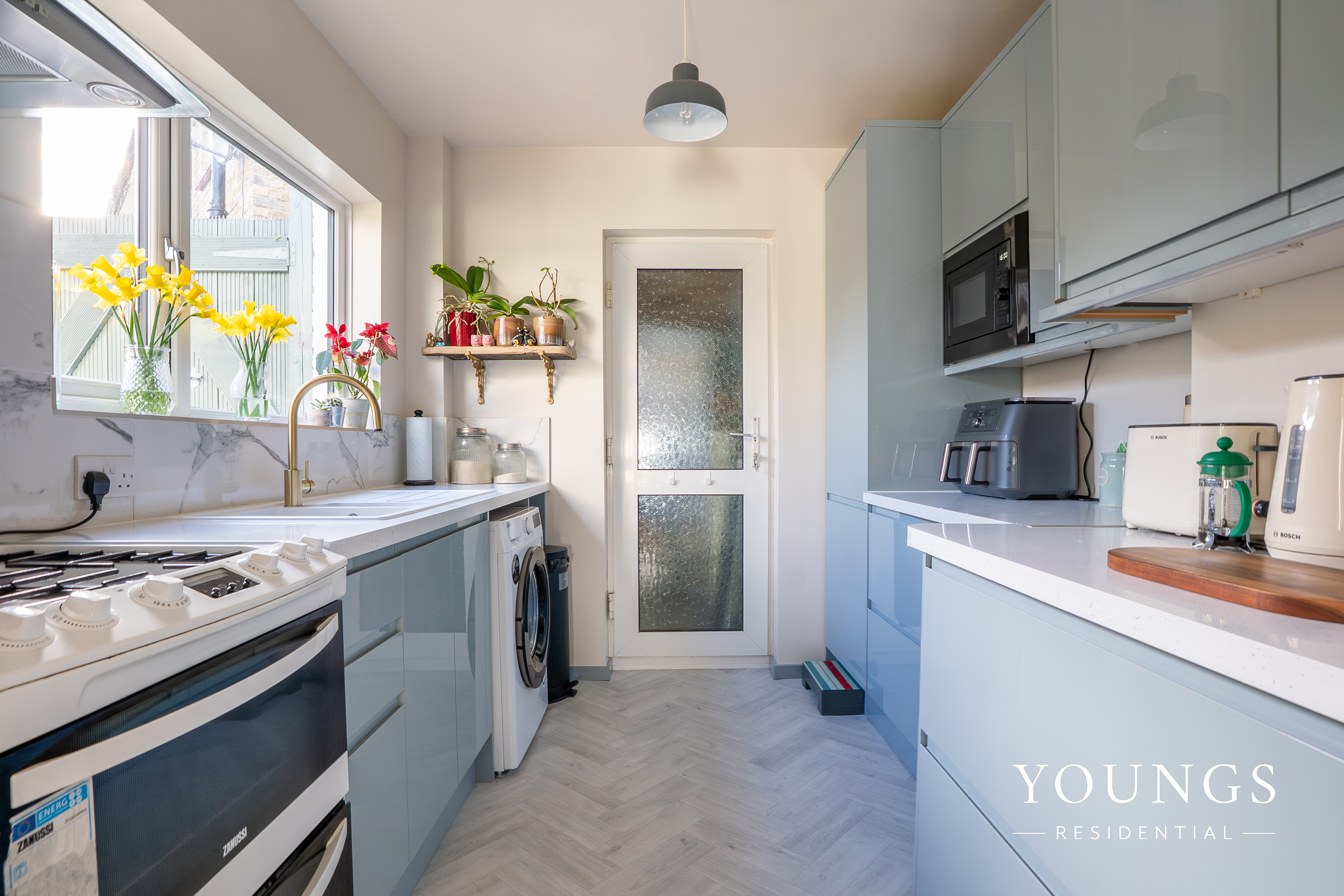 Step inside to discover two inter-linked reception rooms, each filled with natural light and perfect for both relaxing and entertaining. The luxury fitted kitchen features sleek modern cabinetry, with appliances, and ample workspace. The side door leads out into the garage and utility area for flexible storage solutions.