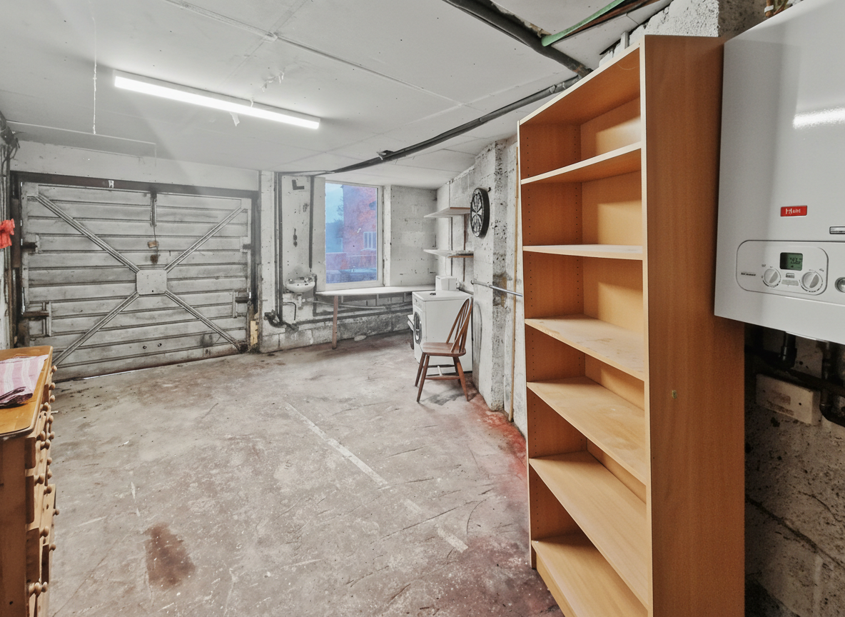 To the rear of the hallway is a spacious open-plan lounge and dining area flowing through to the kitchen, creating a bright and versatile living space. Both the lounge and dining areas benefit from decorative feature fireplaces, adding character and charm. From the lounge there is internal access to the integral garage, which provides excellent storage and also functions as a utility area, housing a washing machine, sink unit, space for a dryer, and the property’s boiler.