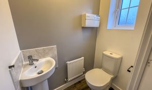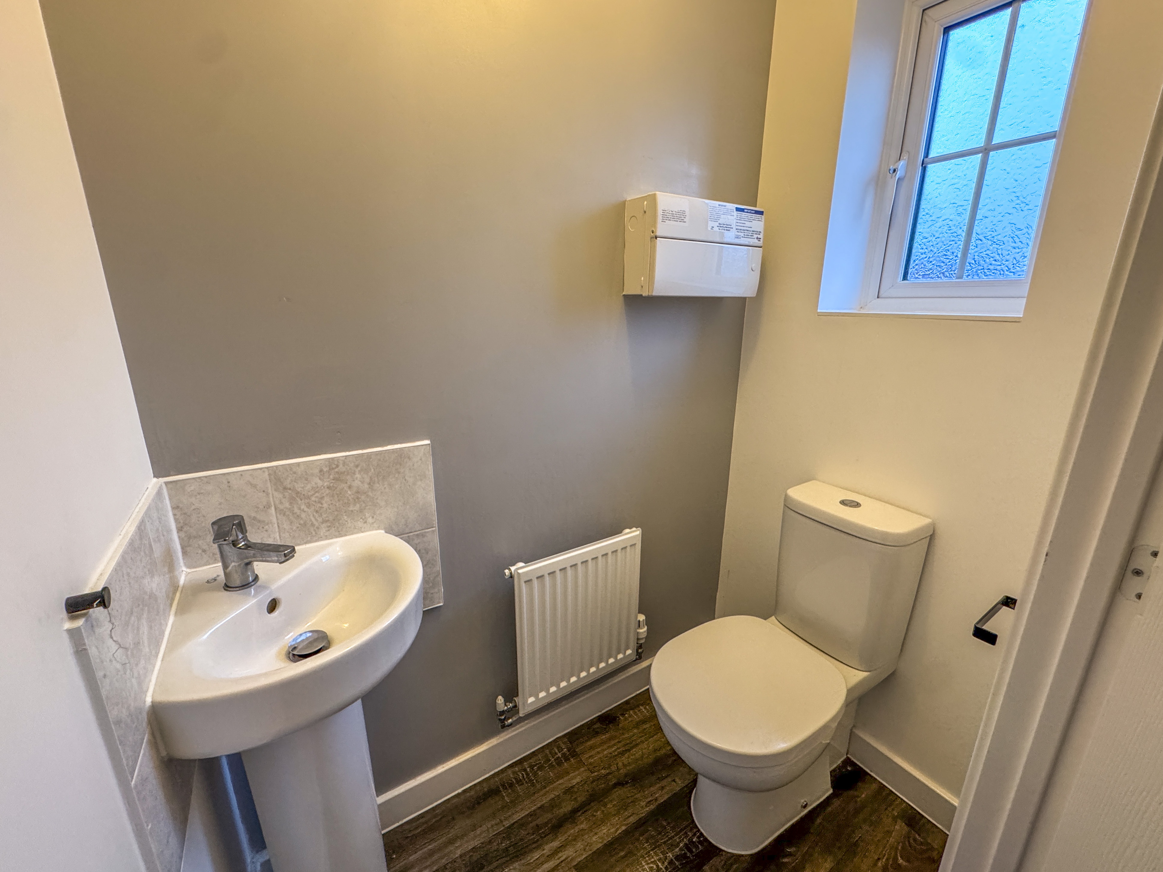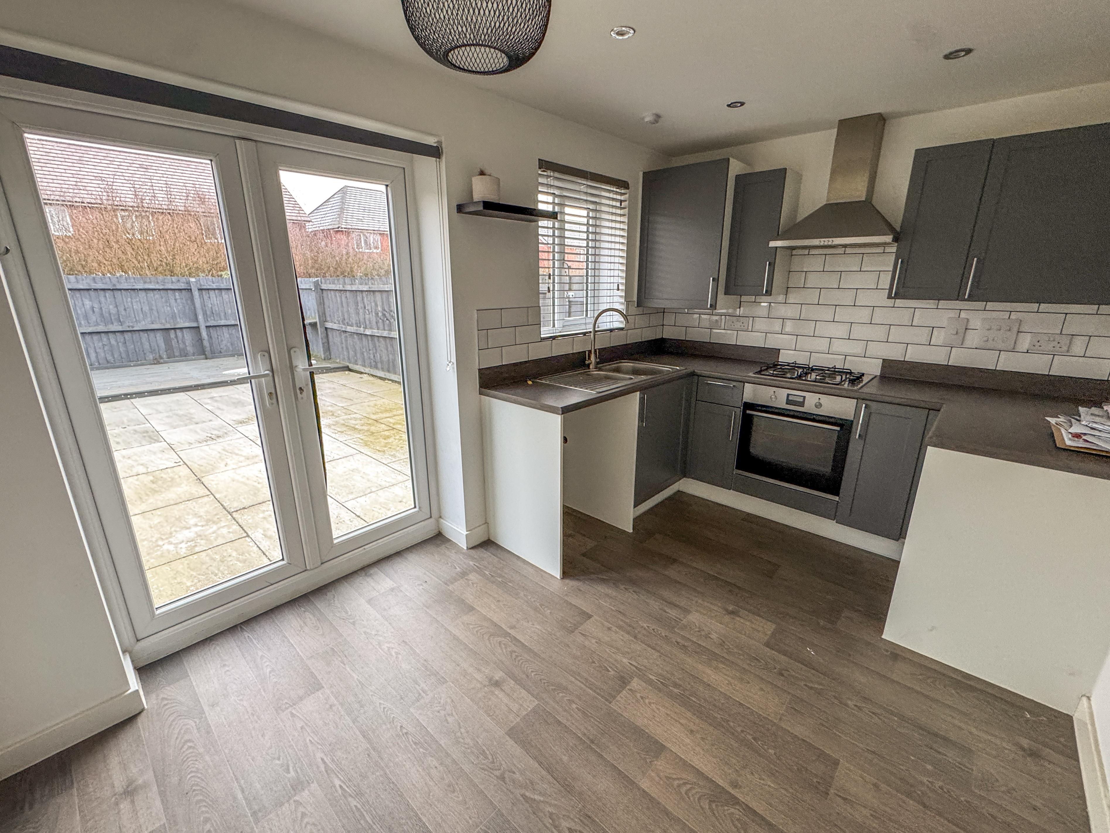 The property offers well-planned accommodation throughout. The welcoming lounge provides a comfortable space to relax and unwind after a busy day and flows through to the bright kitchen and dining area. The kitchen is fitted with a range of contemporary units and features French doors opening onto the rear garden, creating a light and airy atmosphere. A convenient guest WC completes the ground floor.