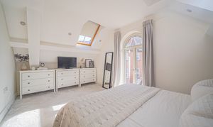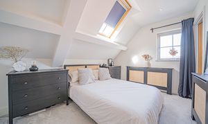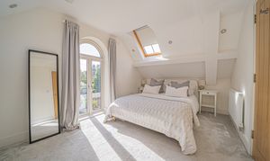 Ascending to the upper level, two generously proportioned double bedrooms await. The principal bedroom boasts an en-suite bathroom and a fitted wardrobe, ensuring both comfort and convenience. Meanwhile, the second bedroom features a delightful Juliet balcony that overlooks the rear garden. This level is served by a luxurious family bathroom, reflecting the high standard of the property's design and finish.