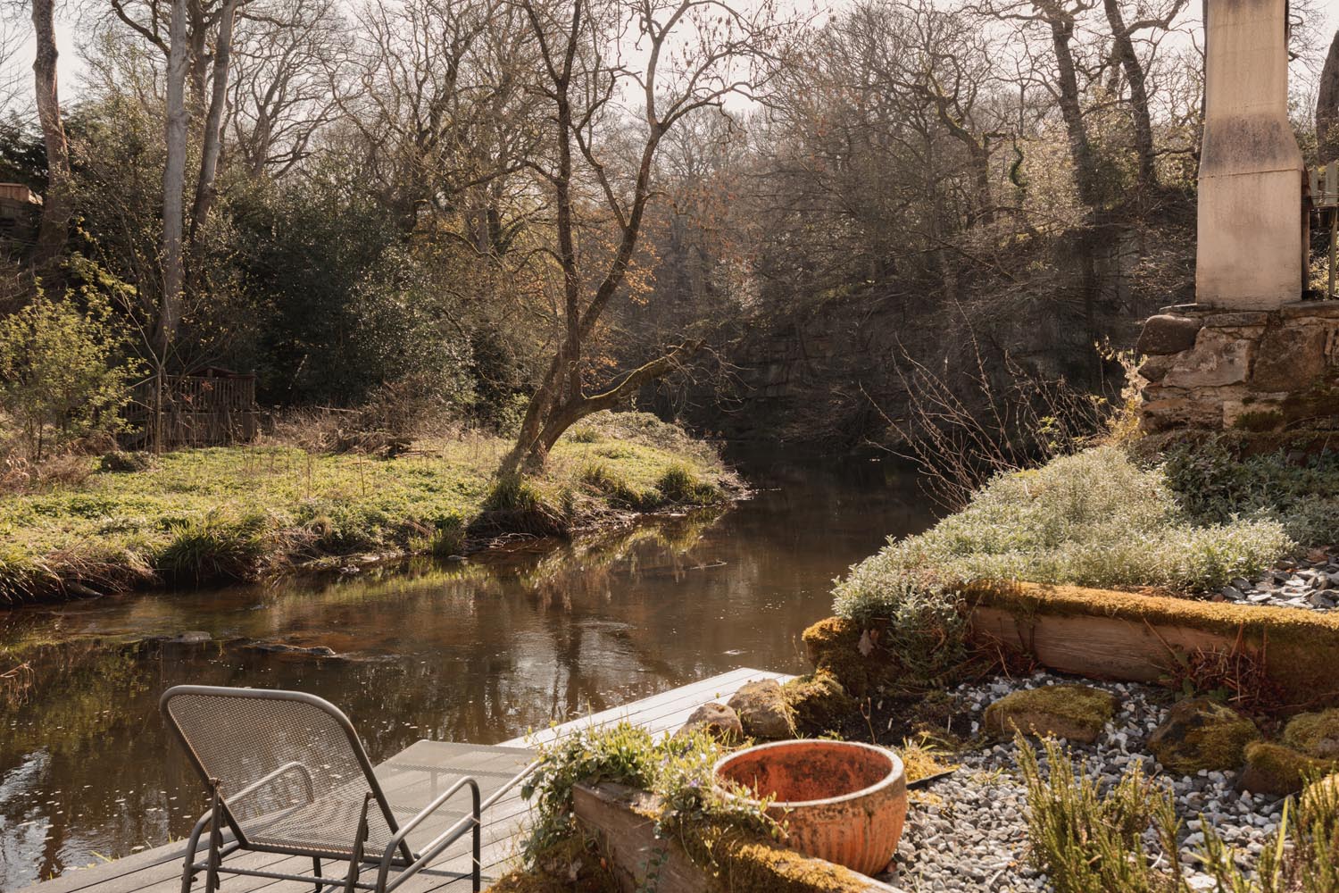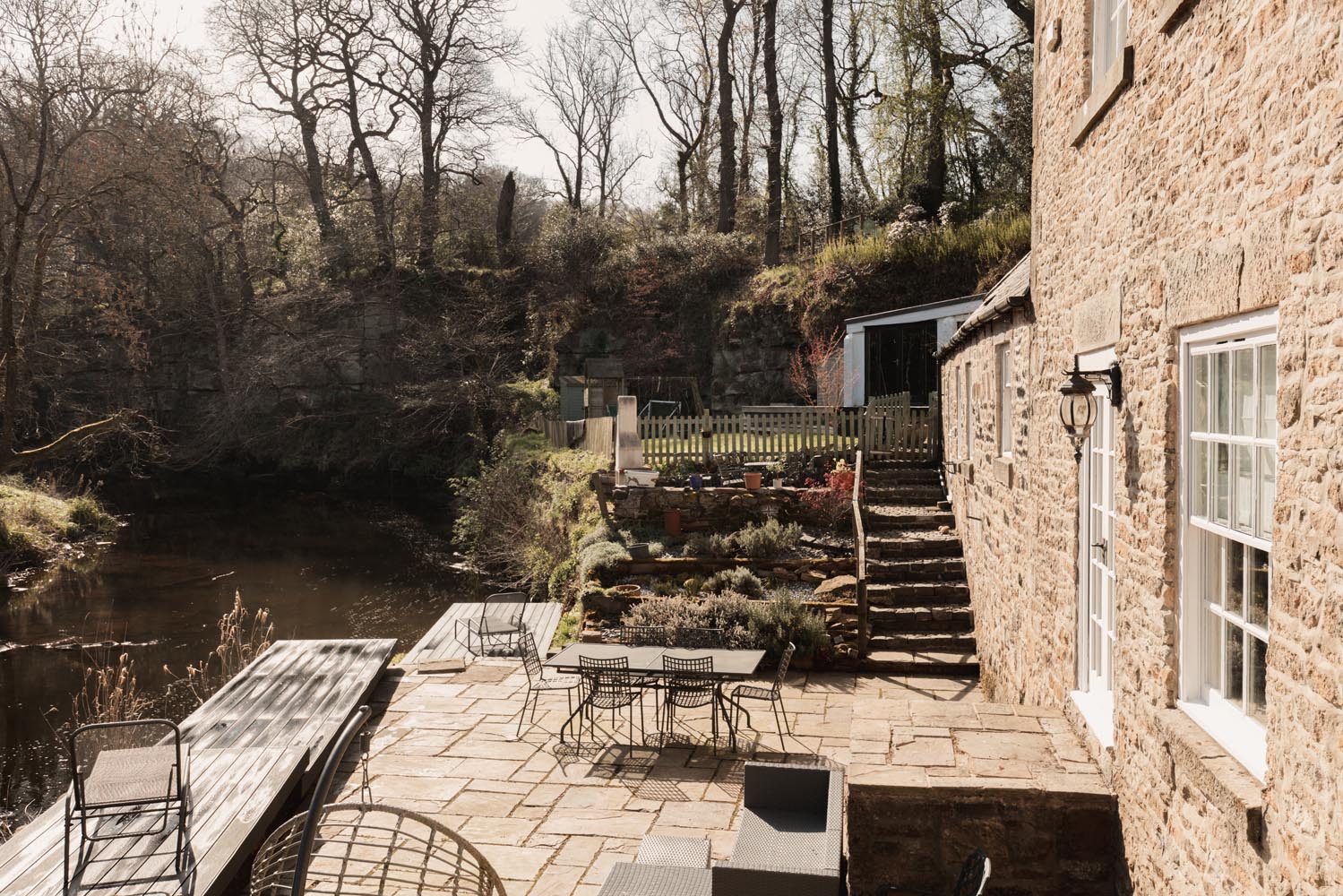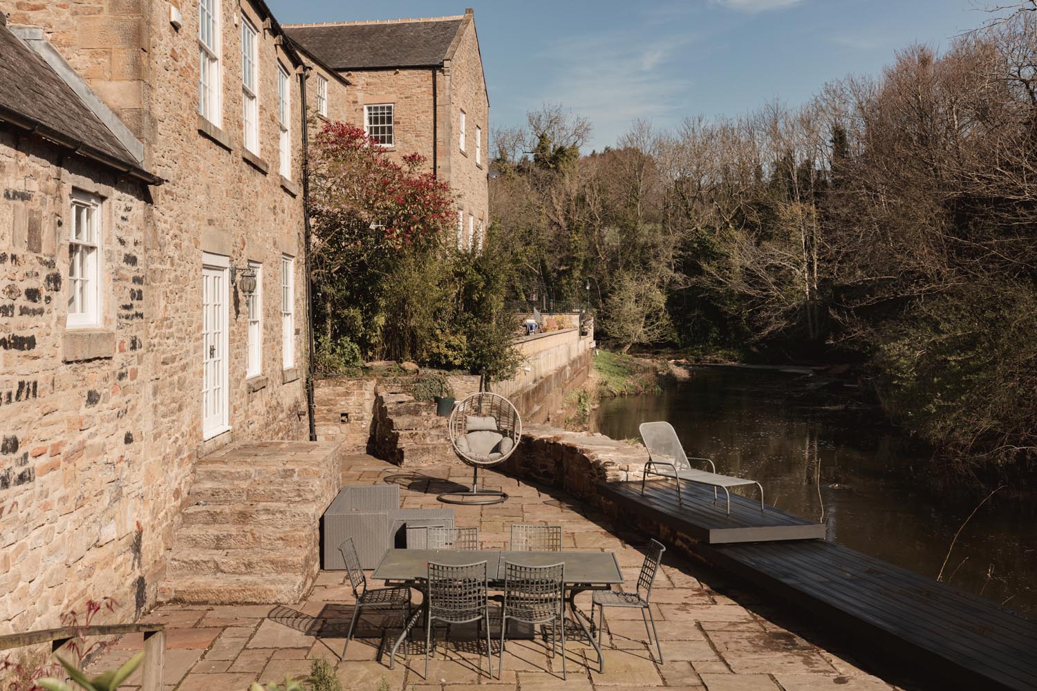 The mill’s historic use reflects the quality and purity of the water drawn from the River Derwent, long recognised as essential for fine paper production and locally understood to have supported work of a particularly high standard, reputedly supplying paper for royal use. This heritage continues to shape the setting, with the river running directly alongside the gardens, bringing a constant sense of movement and outlook that is increasingly rare to find.