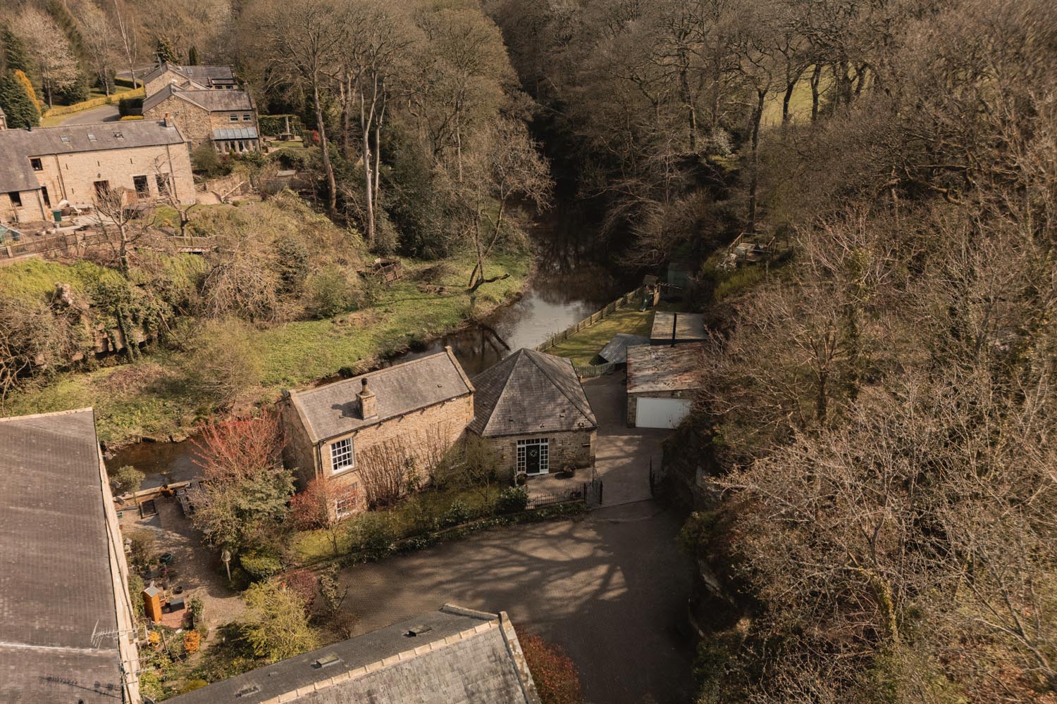 Lintzford Mill is a small and established riverside hamlet positioned between Rowlands Gill and Hamsterley Mill, an area known for its collection of individual stone-built houses and its proximity to the River Derwent. The setting offers a distinctly semi-rural feel, with woodland walks, riverside paths and open countryside close at hand, while remaining well placed for access to the wider Tyne Valley and Tyneside.