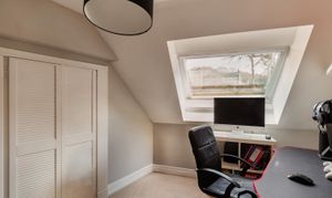 Also on the ground floor, a further room sits just off the entrance hall, currently used as a bedroom but equally suited as a snug or study, with fitted storage already in place. A shower room is positioned alongside, creating a flexible arrangement that works well for guests or single-level living if required.