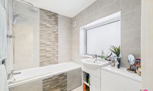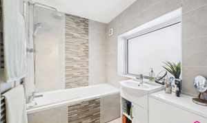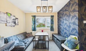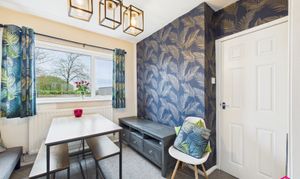 This two bedroom end terrace in the sought after Hapton offers a spacious living room with a large uPVC double glazed bay window and open access to the dining area overlooking the rear garden. The modern kitchen includes an integrated gas hob, oven, extractor fan, laminate flooring, and points for appliances. Upstairs, both bedrooms are generous doubles with fitted carpets, radiators, and uPVC windows. The bathroom features a contemporary three piece suite with tiled bath and walls, vanity sink with storage, and ceiling spotlights.