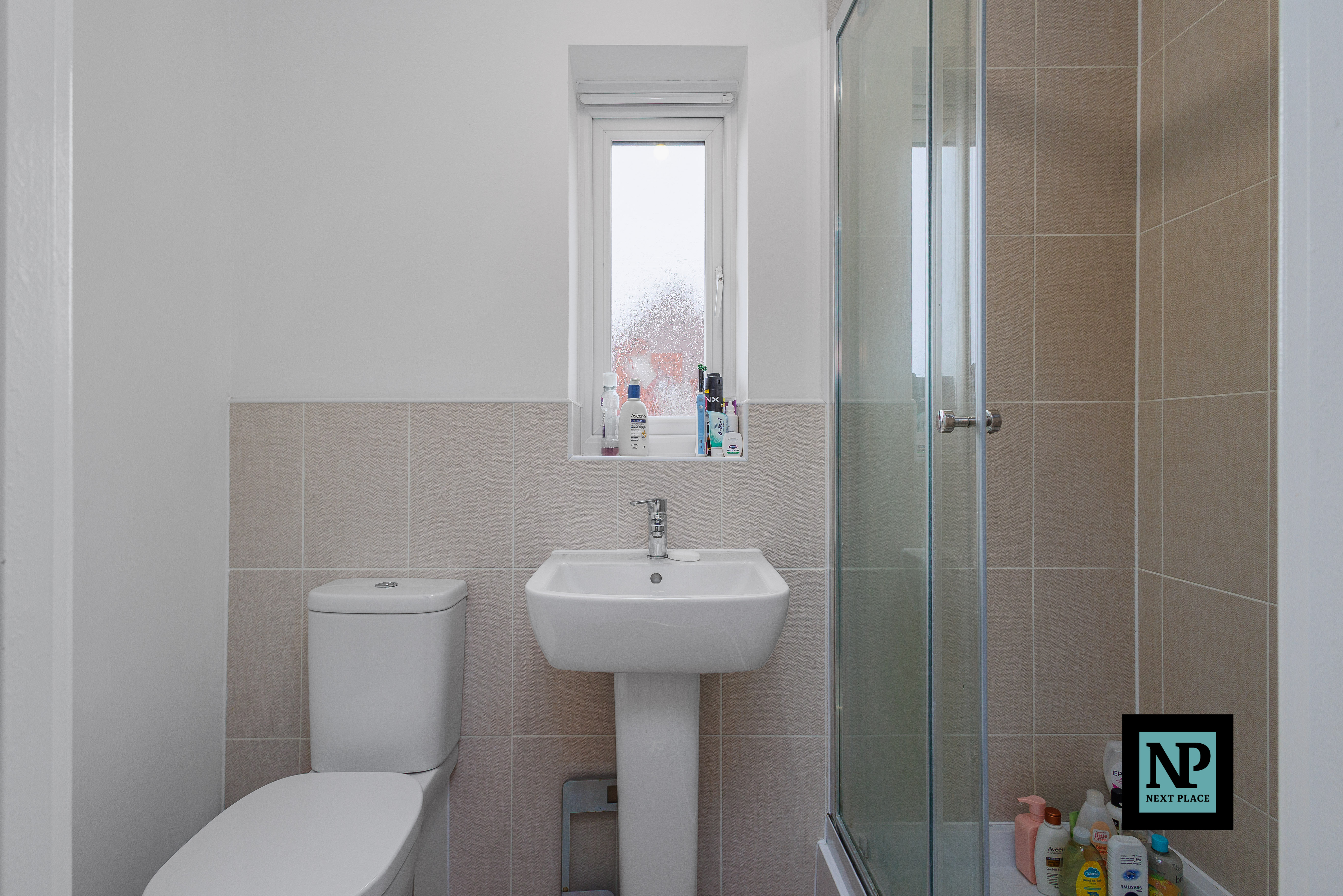 Upstairs, the property offers three well-proportioned bedrooms. The master bedroom benefits from its own en-suite shower room, providing privacy and comfort. The remaining two bedrooms are served by a modern family bathroom, finished to a high standard.