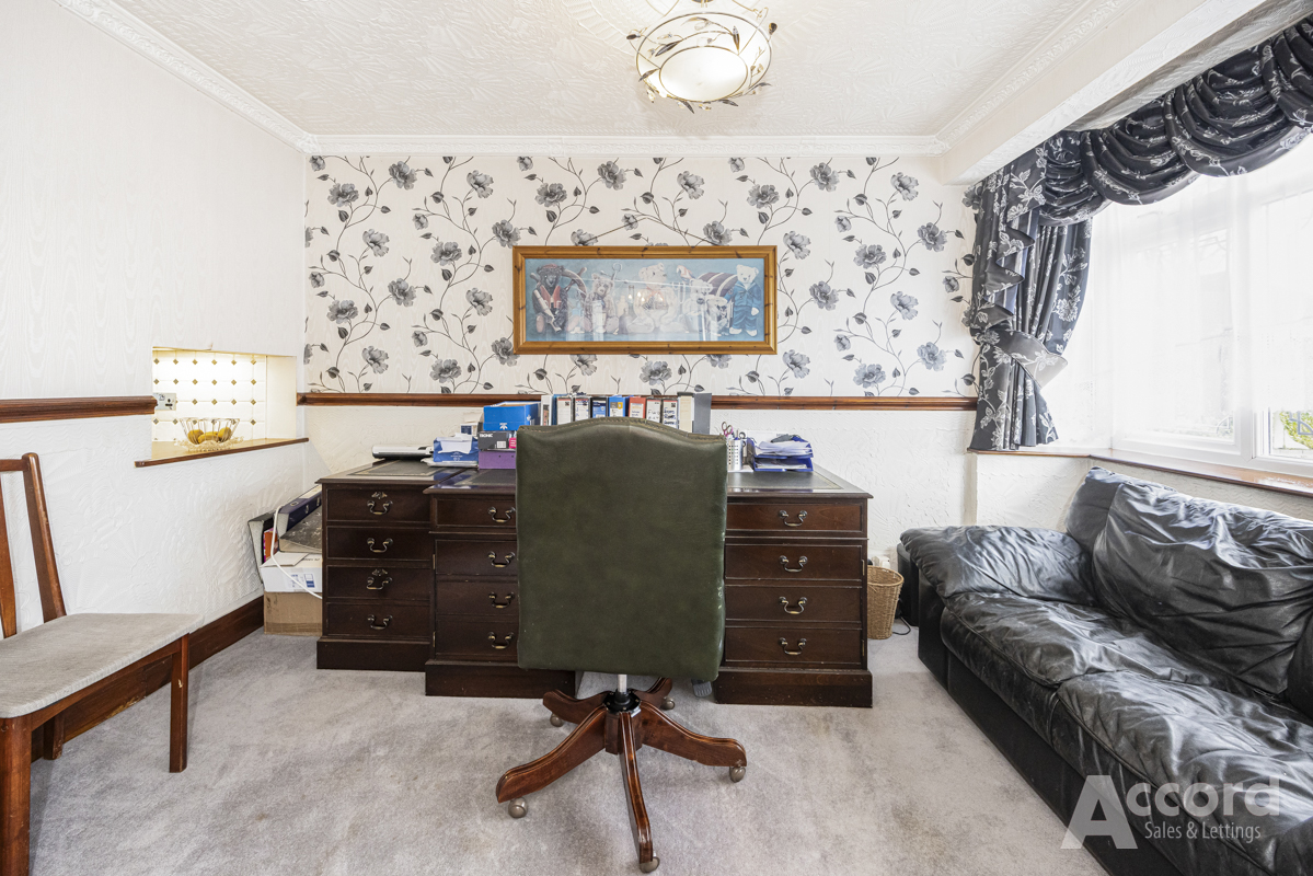 This well-kept three-bedroom detached bungalow offers plenty of space inside and out, with off-street parking for five cars, two reception rooms, a separate study, two garages, a utility room and a shed. It is a home that gives you flexibility straight away, whether you need room to work from home, entertain or simply spread out.
