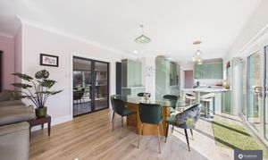 You are welcomed by a gorgeous and spacious entrance hall filled with natural light, creating a wonderful first impression. From here, striking modern black framed glass double doors open into the stunning open plan kitchen, dining and living space, an impressive central hub designed for both everyday living and entertaining.