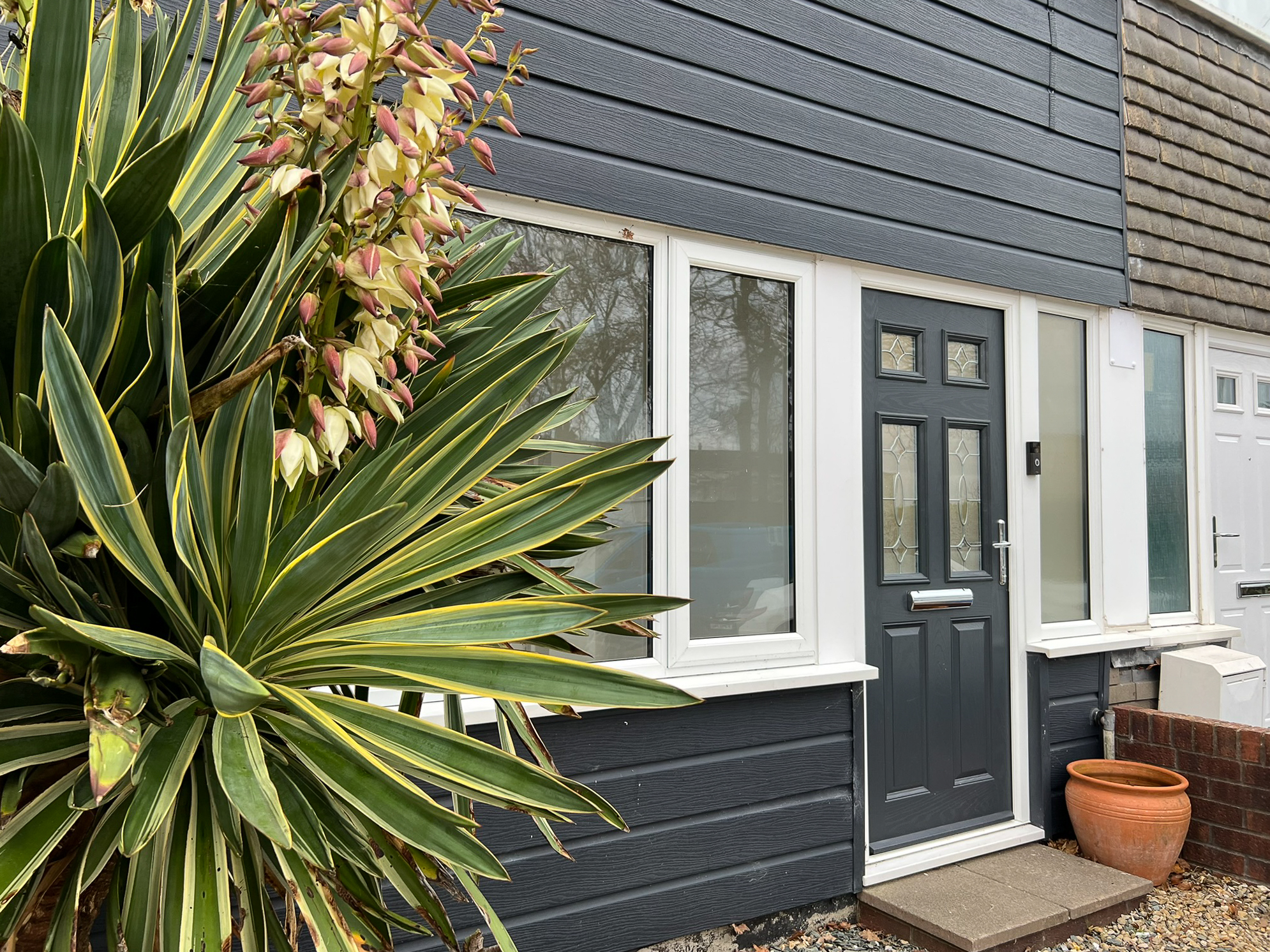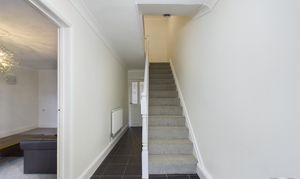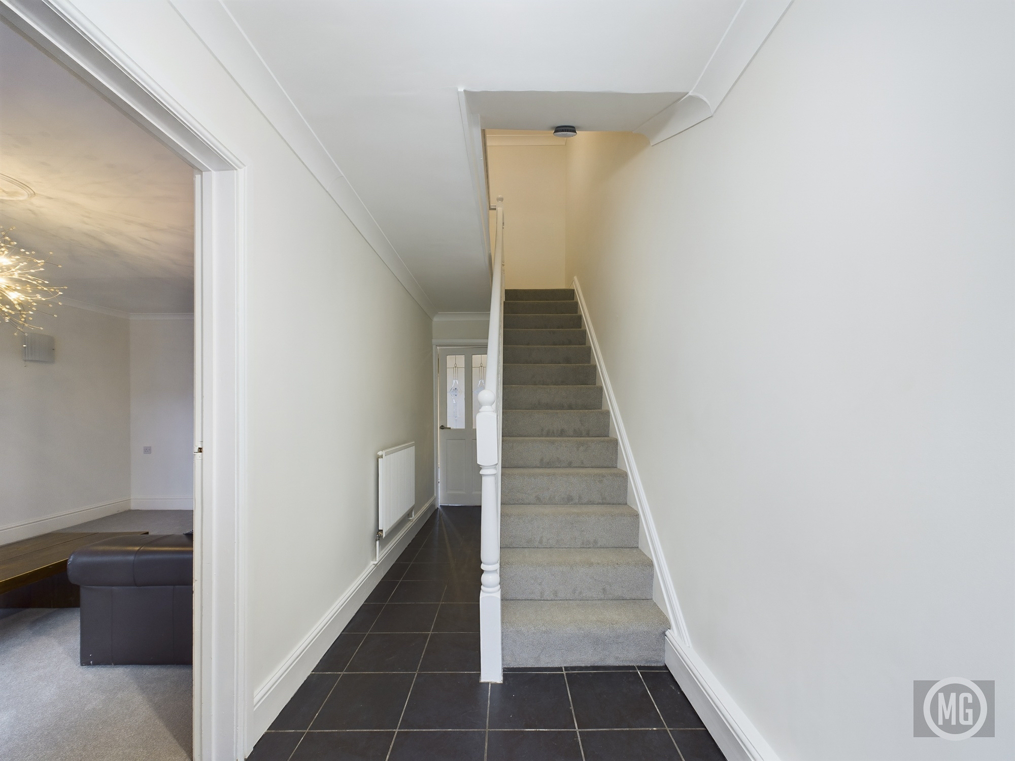Composite door leading into hallway, tile effect flooring, stairway to first floor, radiator