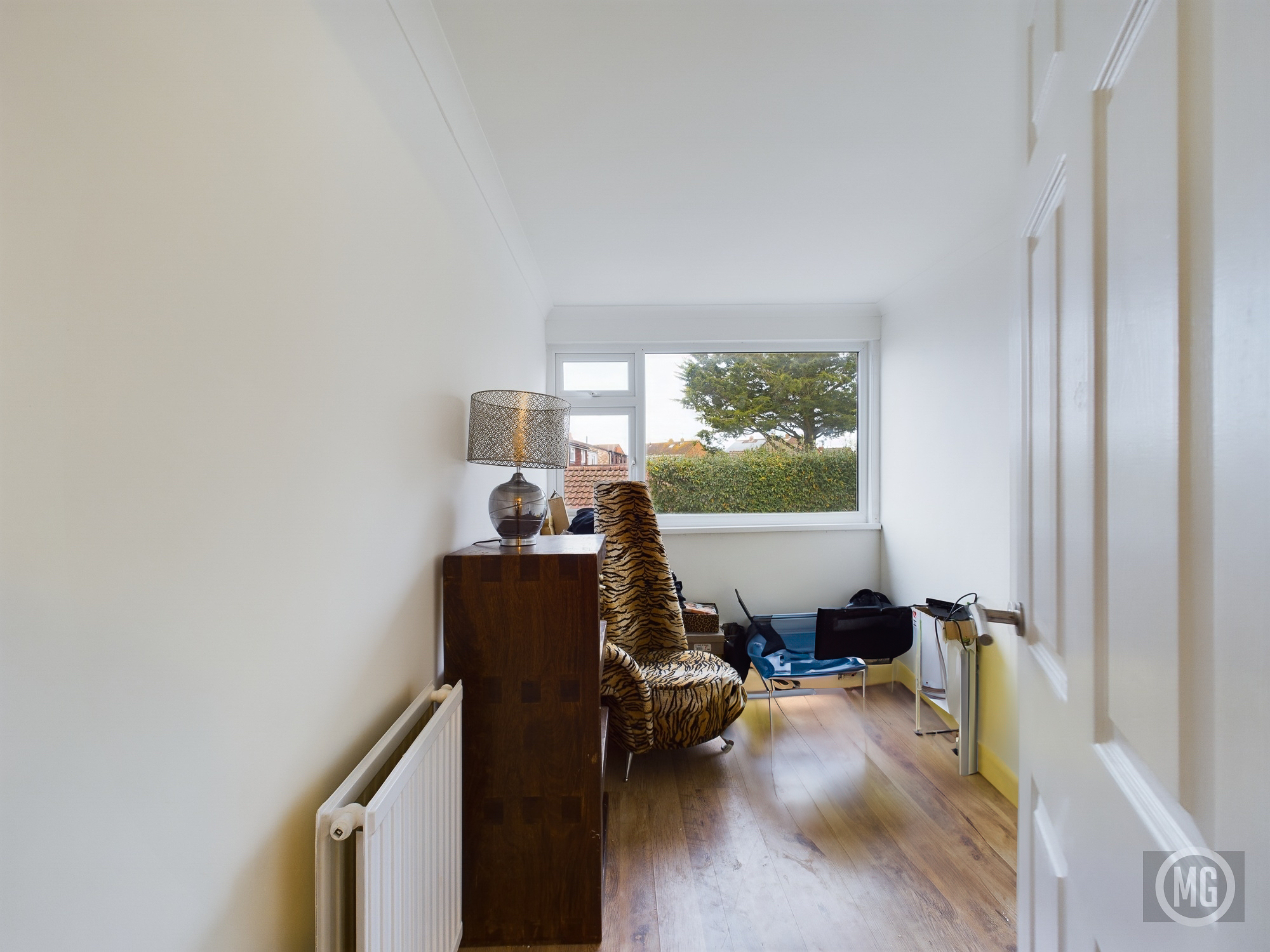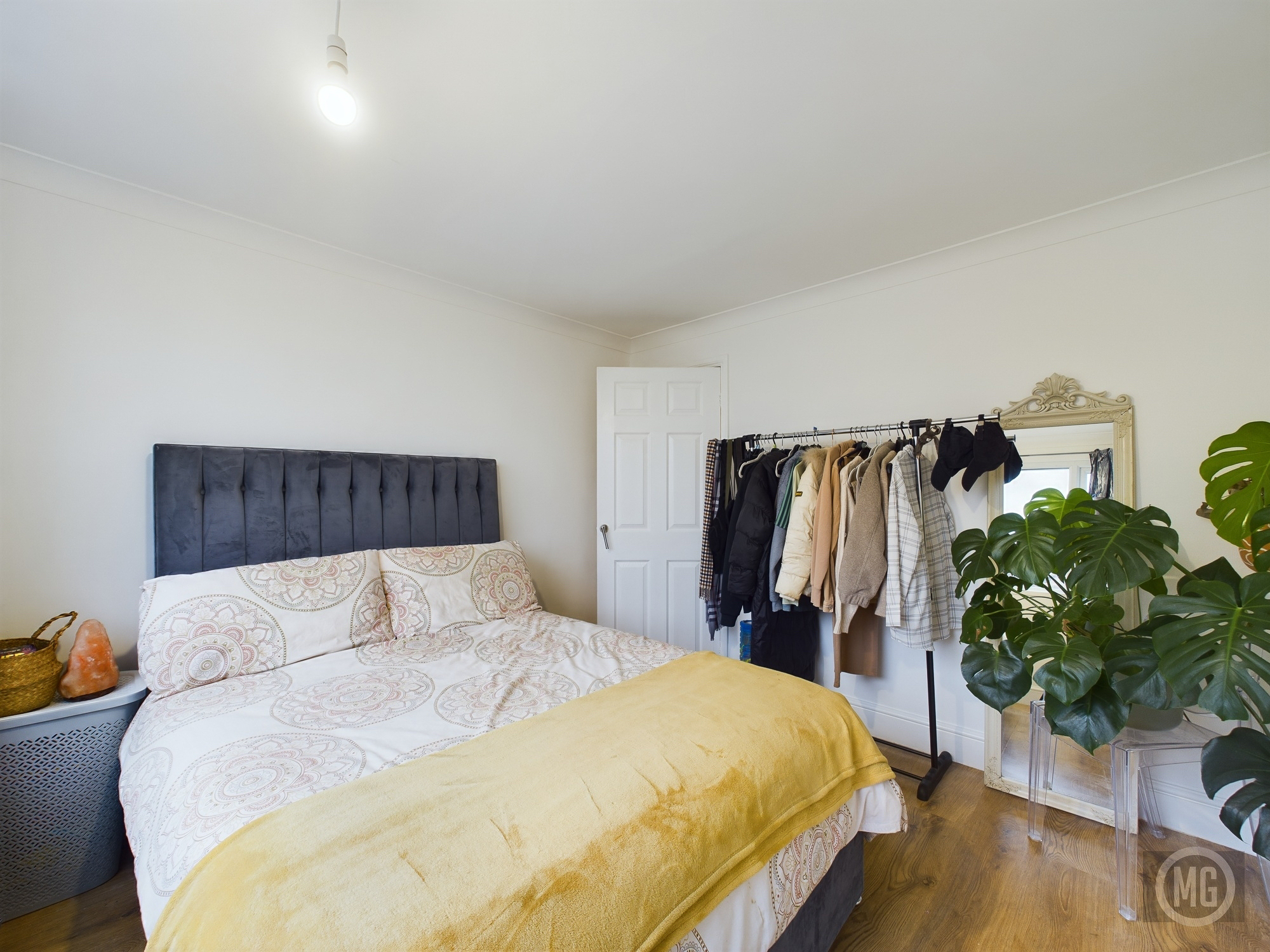 Laminate flooring, radiator, window with front aspect, built in storage cupboard