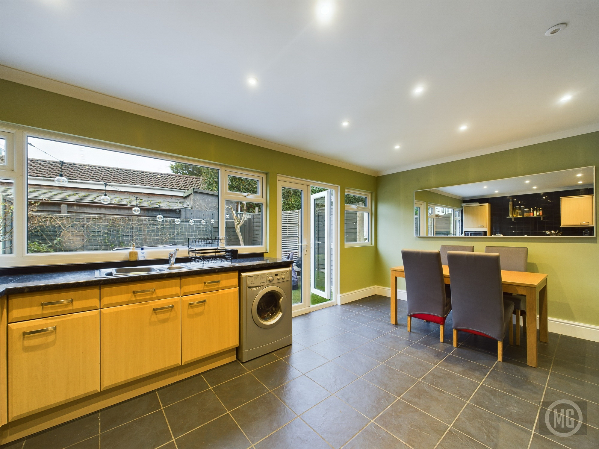 The kitchen/diner is another generously sized room, designed with both practicality and sociability in mind. Featuring an array of storage solutions, space for freestanding appliances, and an under-stair cupboard to keep household essentials tucked away, it’s ready for busy family life. The dining area is perfect for catching up over meals, or weekend brunches. Open the French doors to bring the outdoors in, as you enjoy coffee with friends or keep an eye on the kids playing in the garden.