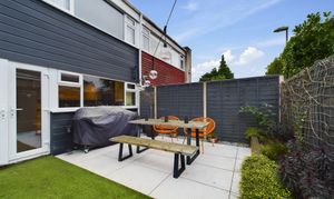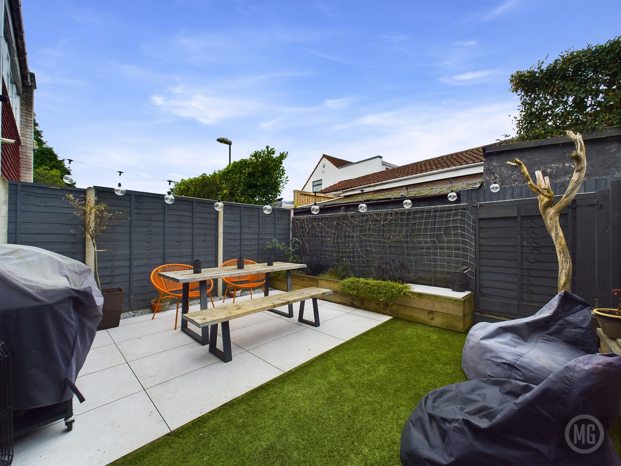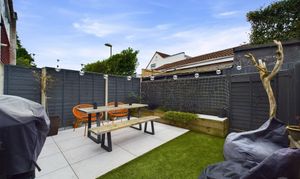Outside, the low-maintenance garden is a mini oasis, featuring an artificial lawn and raised flower beds. Picture BBQs with friends, alfresco dining, or relaxing with a drink under the stars.