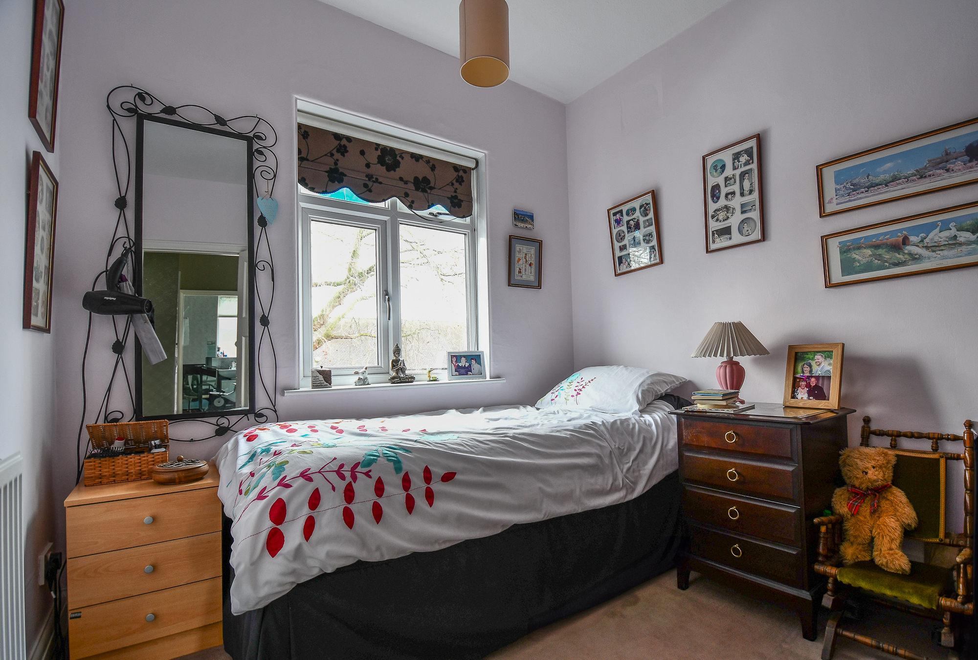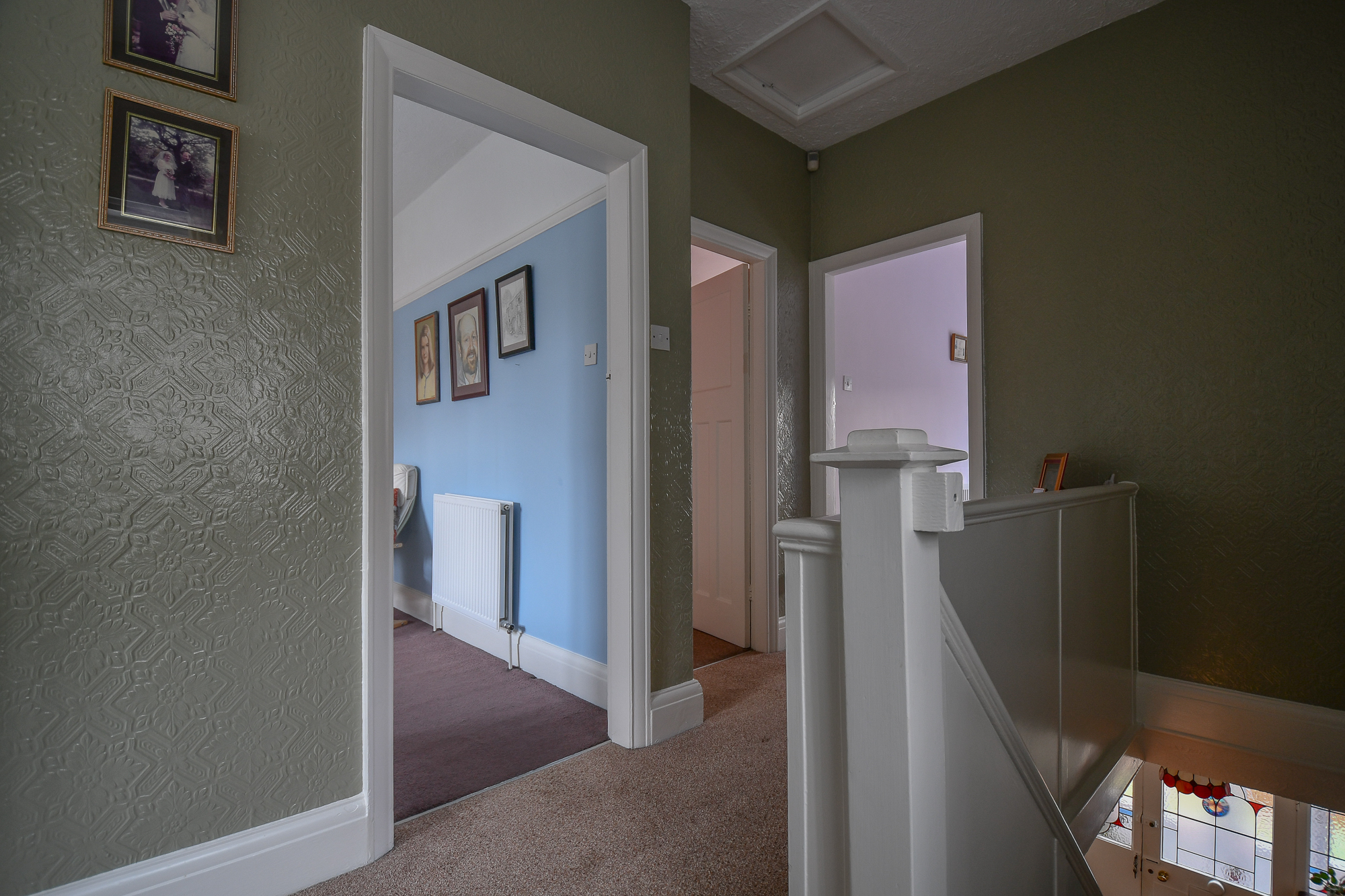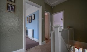 The third bedroom is a front-facing single room, finished with carpeted flooring and notably benefiting from the absence of the usual over-stairs bulkhead, creating a more practical and spacious layout than typically found.