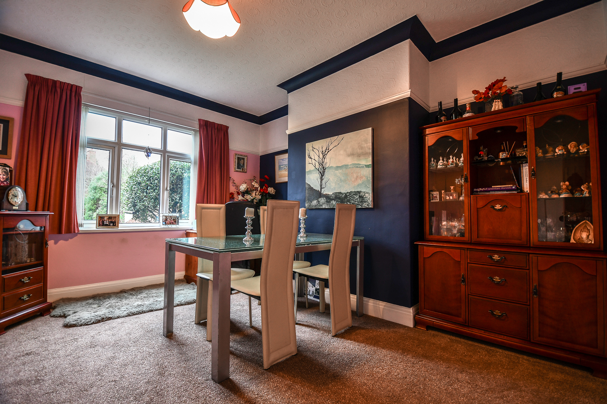 The dining room is a spacious and versatile reception room, featuring carpeted flooring and a large double-glazed window overlooking the rear garden, allowing plenty of natural light to flow through. With ample space for a full dining table, it’s ideal for family meals, entertaining, and special occasions.