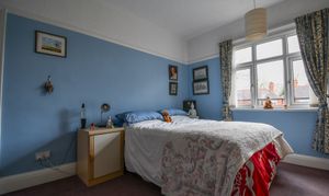 A spacious rear-facing double bedroom with a calm, private feel. Carpeted for comfort and fitted with built-in wardrobes offering fantastic storage space, it’s ideal as a guest room, children’s bedroom, or additional main bedroom.