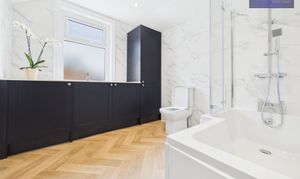 Ascending to the landing, you will find 2 nicely appointed bedrooms, both offering a serene atmosphere, and the elegant newly fitted bathroom. The bathroom has been purposely designed to accommodate a washing machine in the cupboards, ensuring maximum efficiency and convenience.