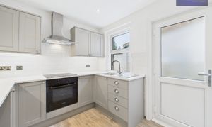 Upon entering, you are greeted by an inviting hallway that leads to a cosy lounge, a spacious living/dining room, and a newly fitted kitchen boasting contemporary features. (The kitchen also provides ample space for a dishwasher or washing machine.) Storage space under the stairs in the kitchen allows for easy organisation and functionality.