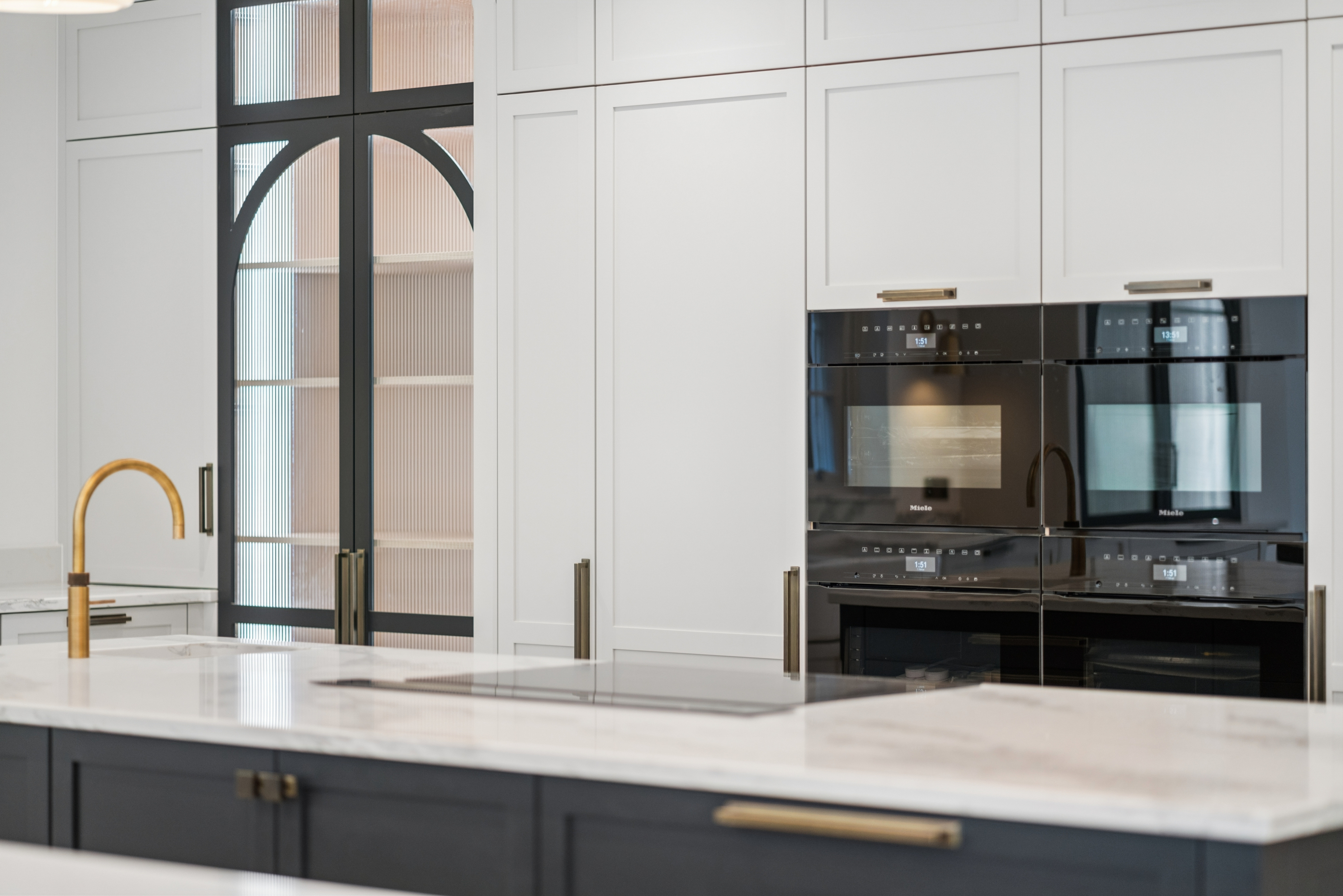 At the heart of the home lies a beautifully appointed designer kitchen by ILK, featuring handcrafted bespoke cabinetry, a Belfast sink and extensive preparation and storage space. A full suite of Miele appliances includes: