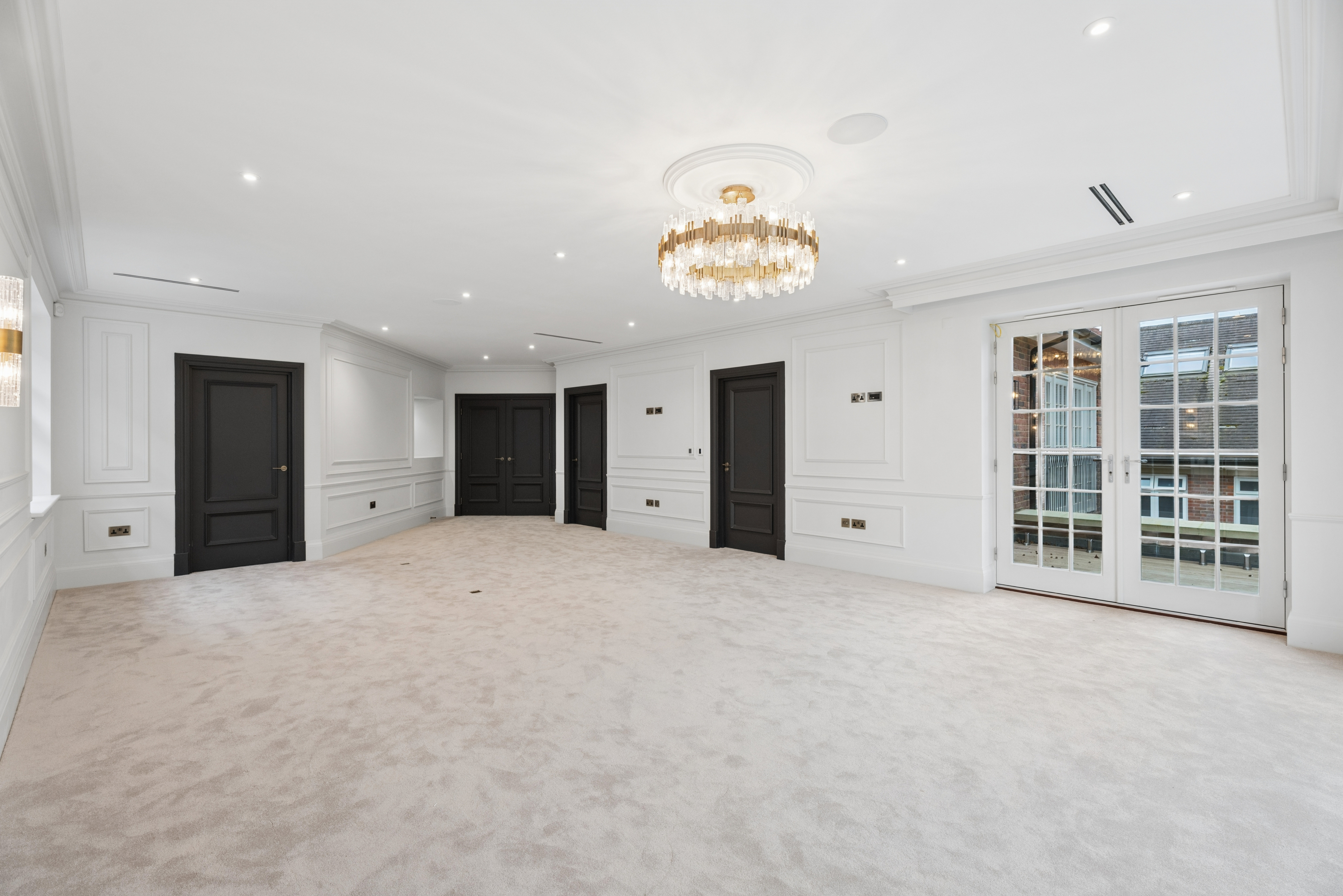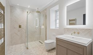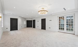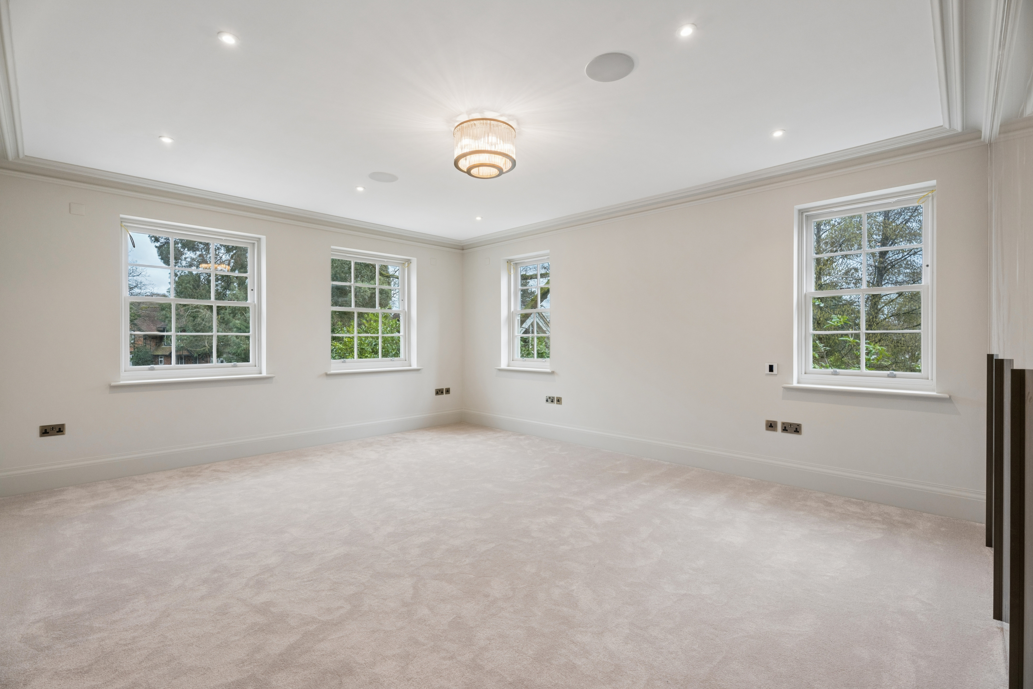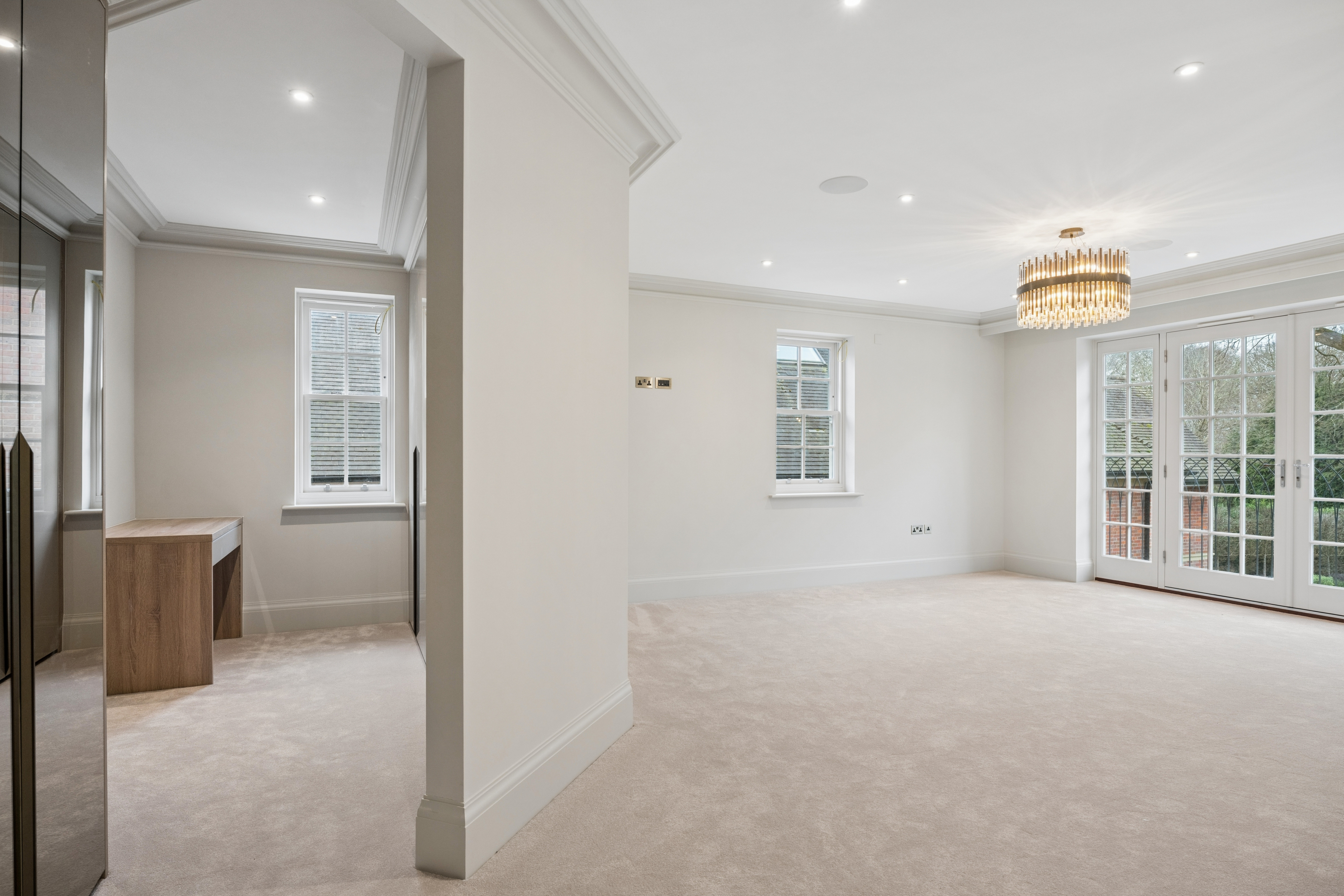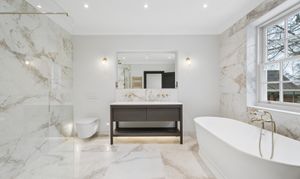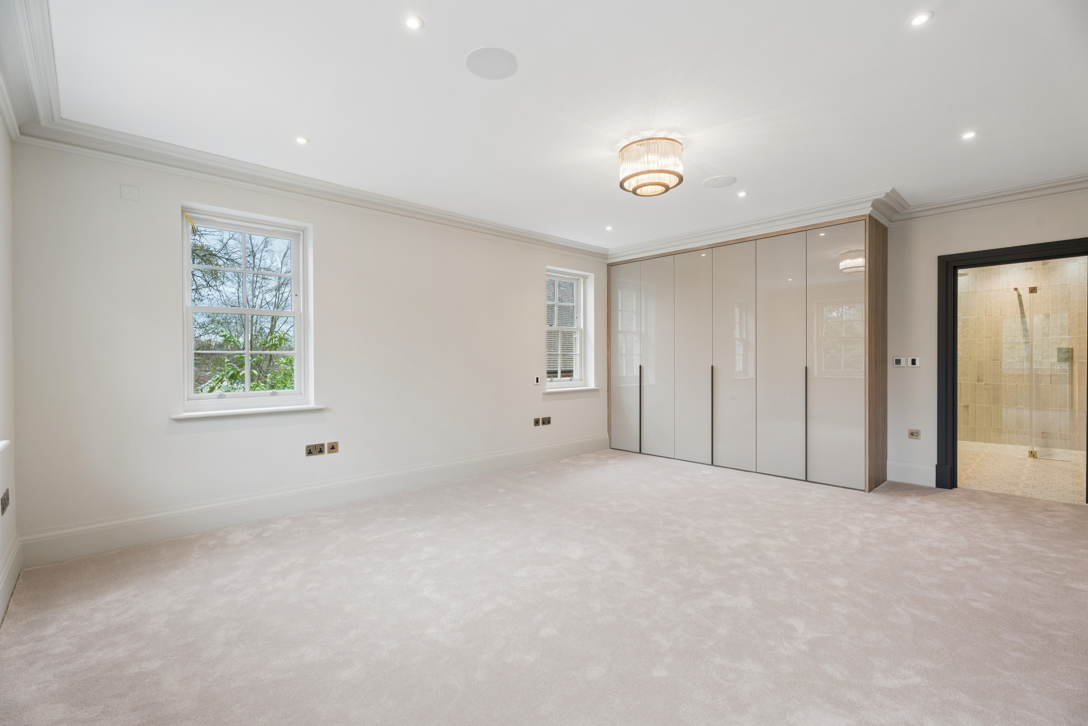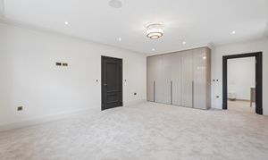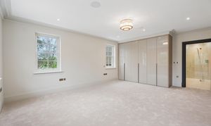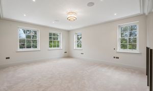 The home offers six generously proportioned bedroom suites, each with its own beautifully finished bathroom. The principal suite is particularly impressive, benefitting from a private balcony and a luxuriously appointed bathroom featuring Lusso stone bath and high-end sanitaryware.
