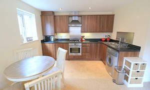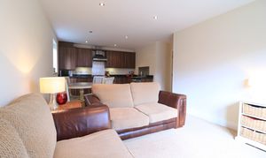 On entering the apartment, you're welcomed into a bright and spacious hallway with a large walk-in storage cupboard and an intercom system. The lounge and dining area is open plan to the kitchen, offering a fantastic space filled with natural light from a large window. There's plenty of room for both lounge and dining furniture, making it the perfect space to entertain or relax.