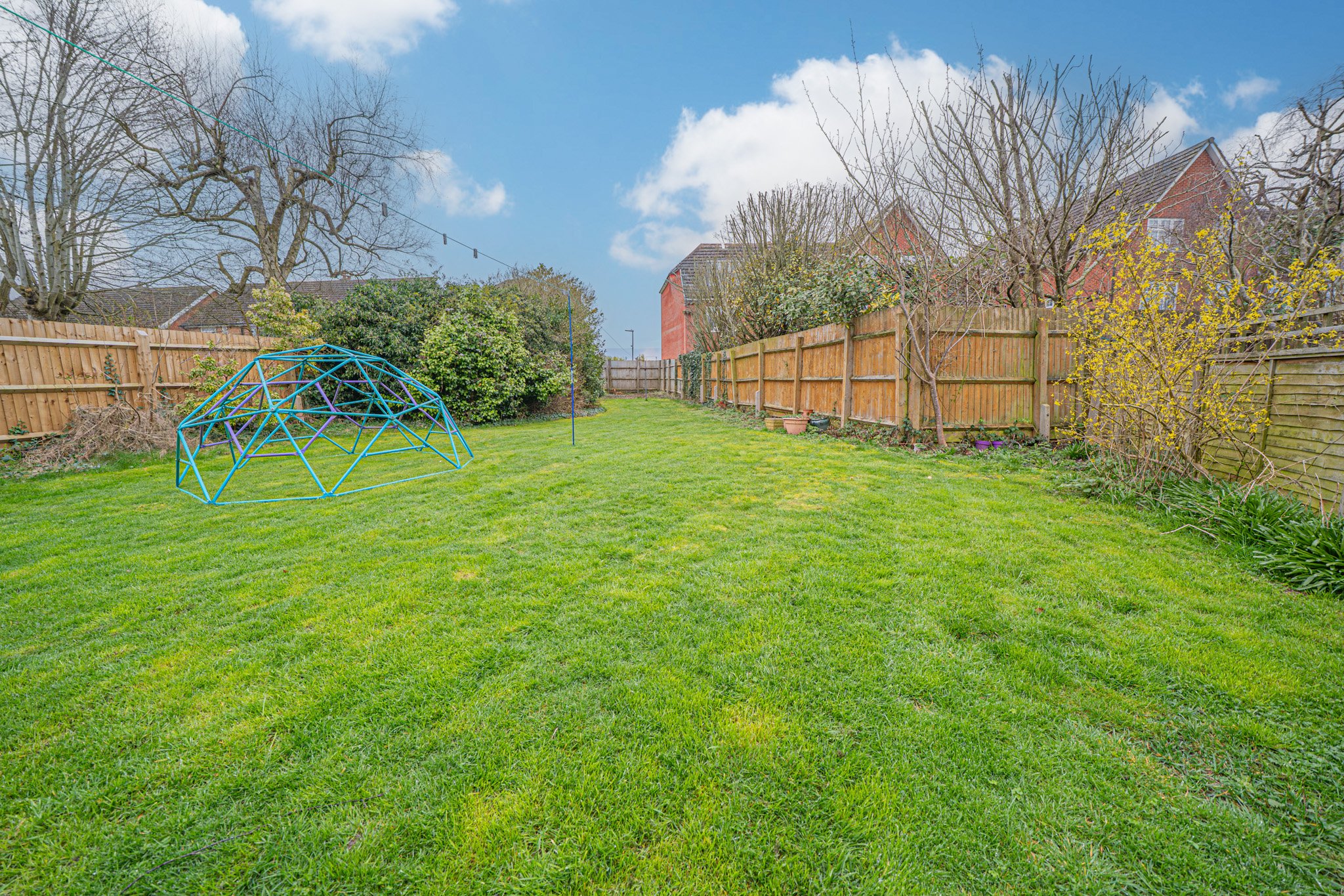Outside, the property unfolds into a generously sized garden, providing a tranquil retreat for outdoor activities and leisure. A wide driveway leads to a single garage, ensuring ample parking space for vehicles and offering convenient storage solutions.