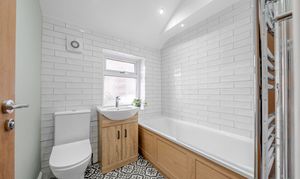 To the first floor are two well-proportioned double bedrooms together with a single bedroom, all served by a contemporary family bathroom fitted with an over-bath shower and attractive modern tiling.