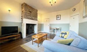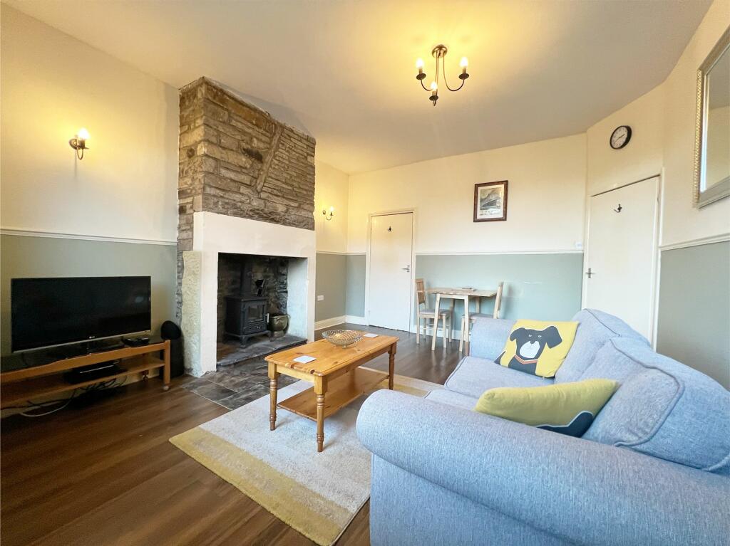 Is a comfortable and well proportioned reception room which has two PVCU double-glazed windows providing plenty of natural light, ceiling light point, dado rail, central heating radiator, two wall light points and as the main focal point of the room, there is an impressive stone fire place which is home to a log burning stove which rests on a raised stone hearth. To one side a door gives access to a useful storage area beneath the staircase.