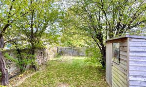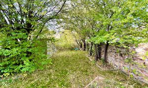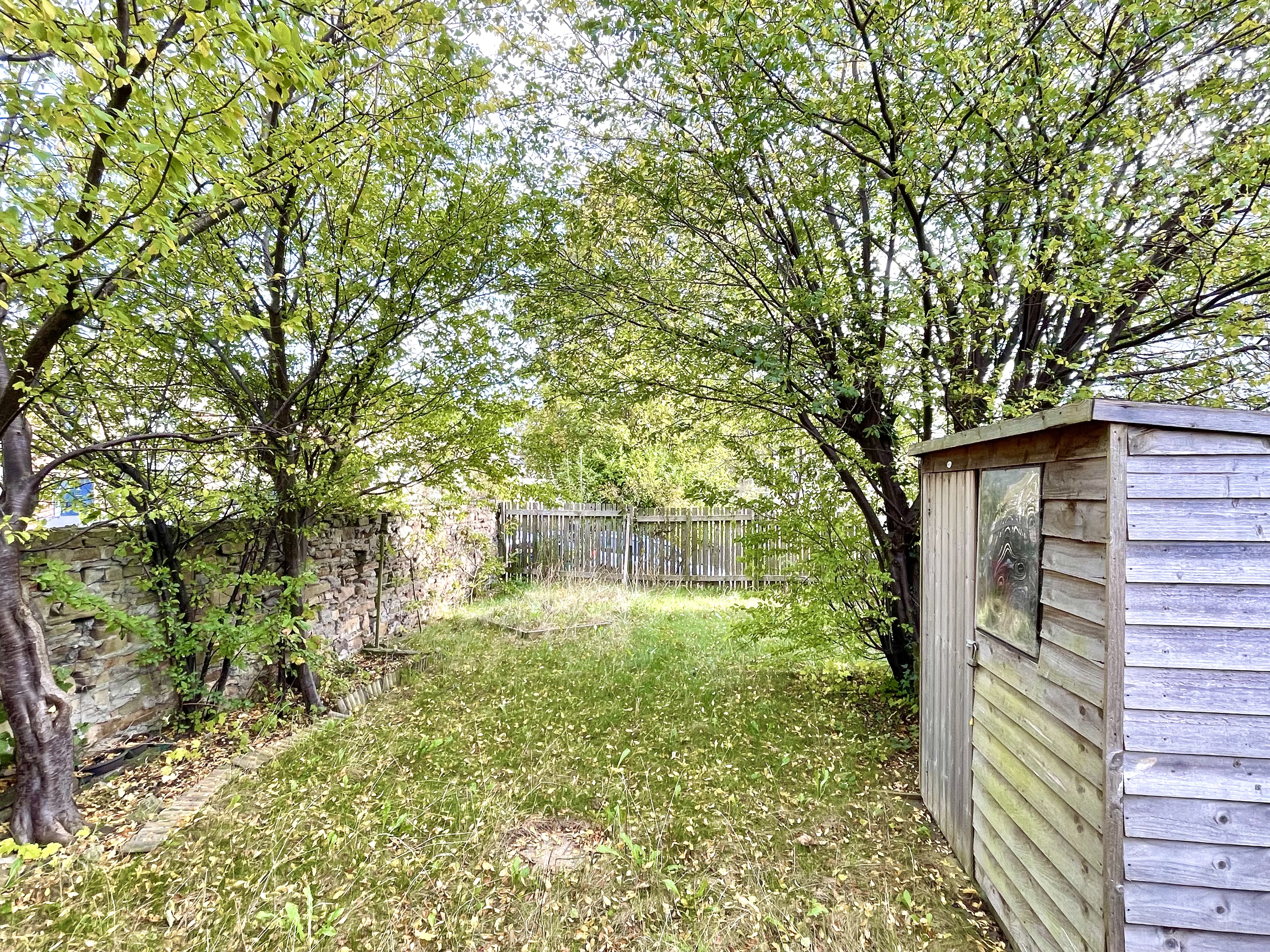 To the right-hand side of the property there is a timber hand gate giving access to a large garden which is lawned and is partly boarded by stone wall and timber fencing, there is a lawned area together with planted trees, shrubs, timber garden shed and an outside cold-water tap.