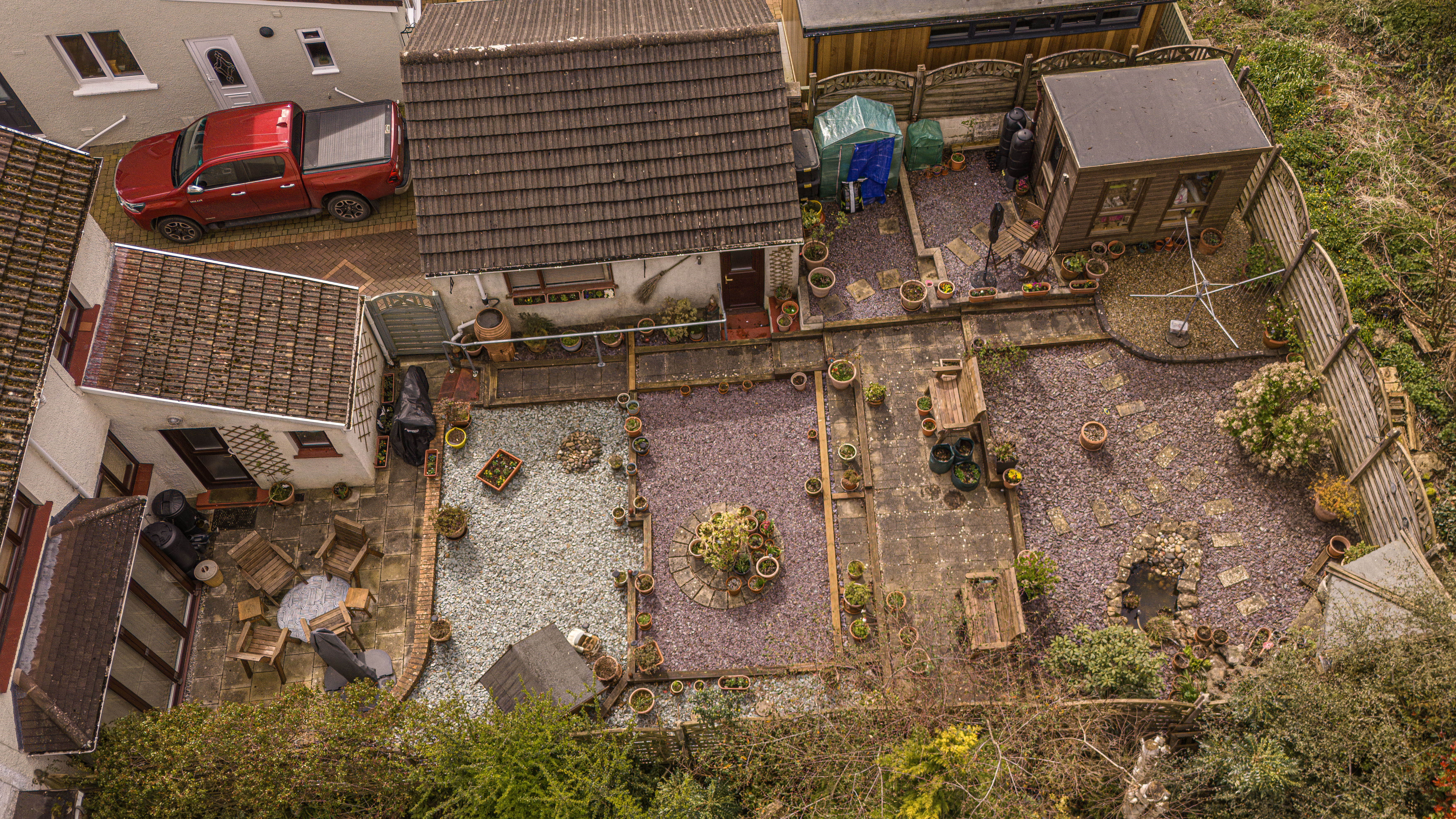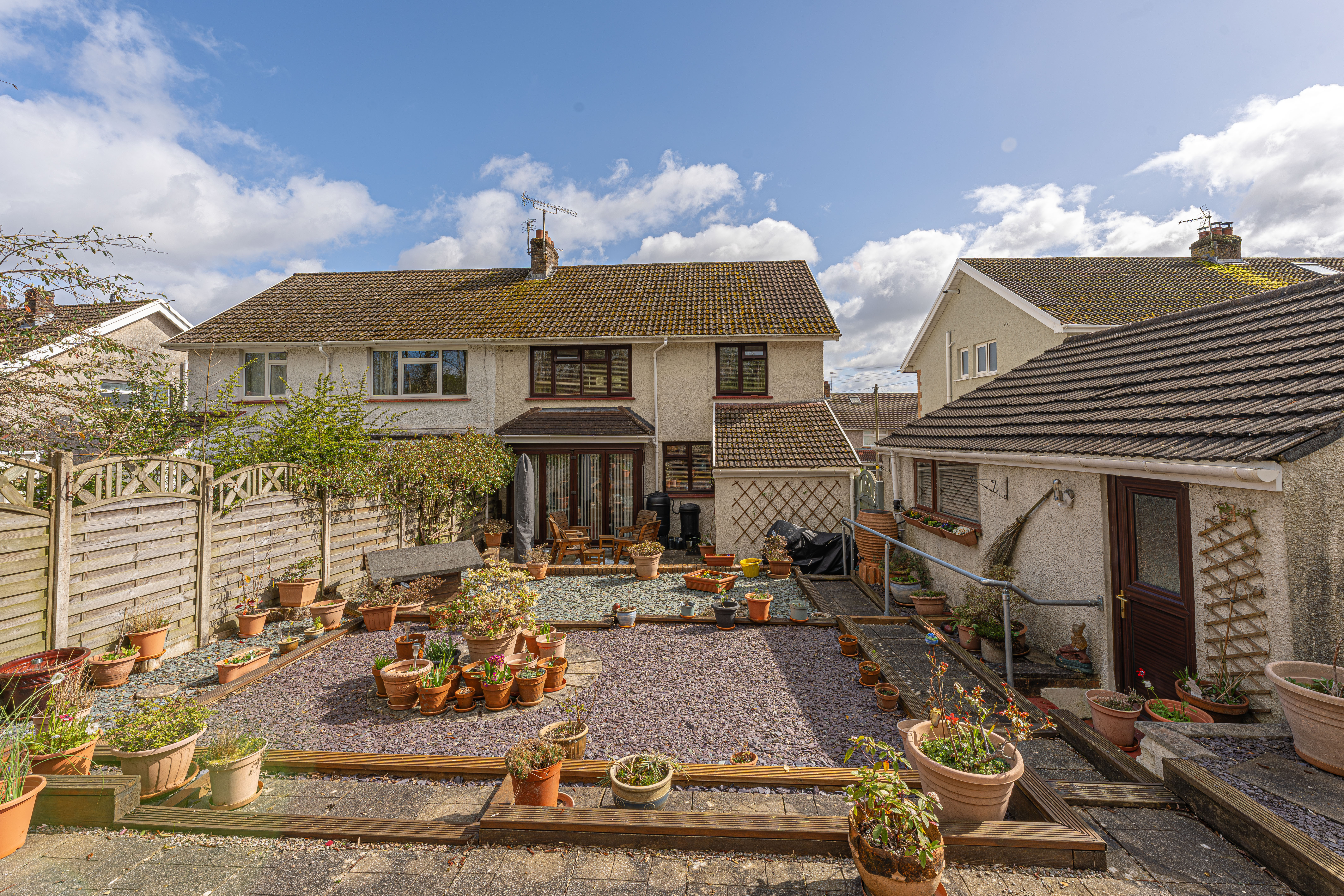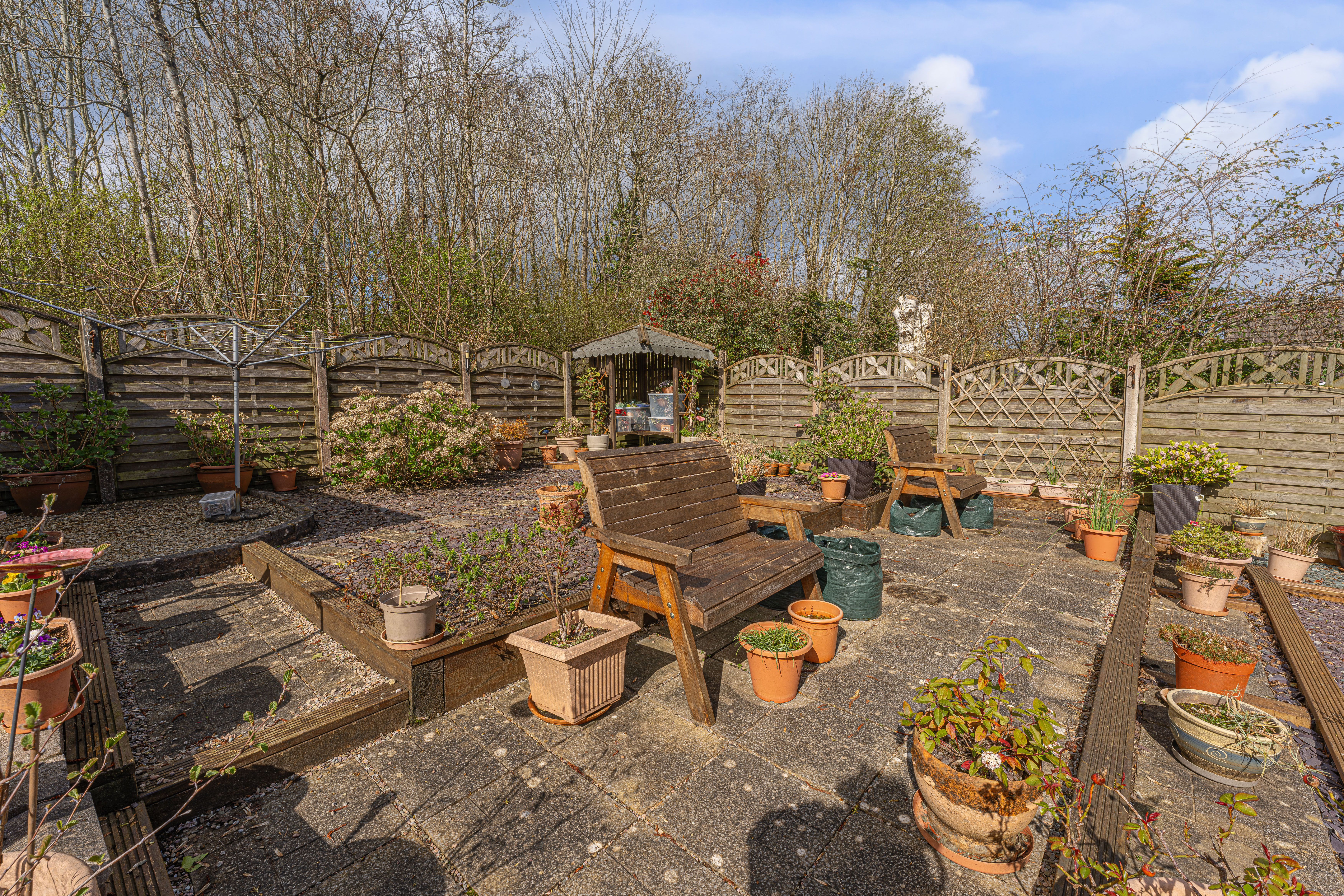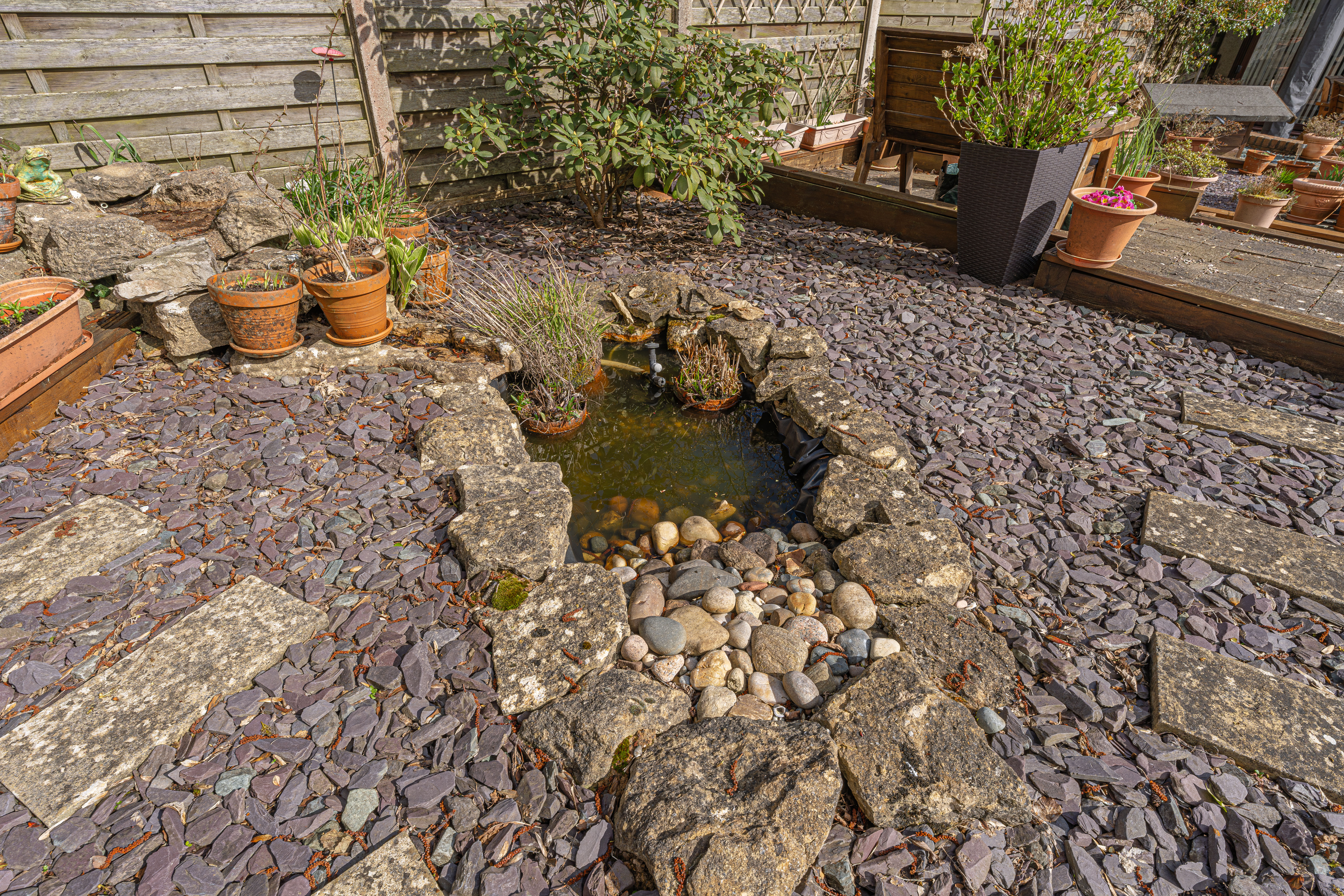 The beautifully landscaped south facing garden sits at the rear of the house, and offers a wide range of space for residents to enjoy. The garden is fully enclosed, and complete with decorative pathways, a pond, and many patio areas ideal for lounging in the sunshine, catching up with friends and family, and dining al-fresco style. A helpful cabin with built in electricity and insulation was erected approximately 4 years ago by a local tradesman and is currently used by the owner as a peaceful environment for relaxing. The detached garage provides added storage and sheltered parking. Additional off-road parking is available with a large driveway to the front and side of the house, offering parking space for at least 3-4 vehicles.